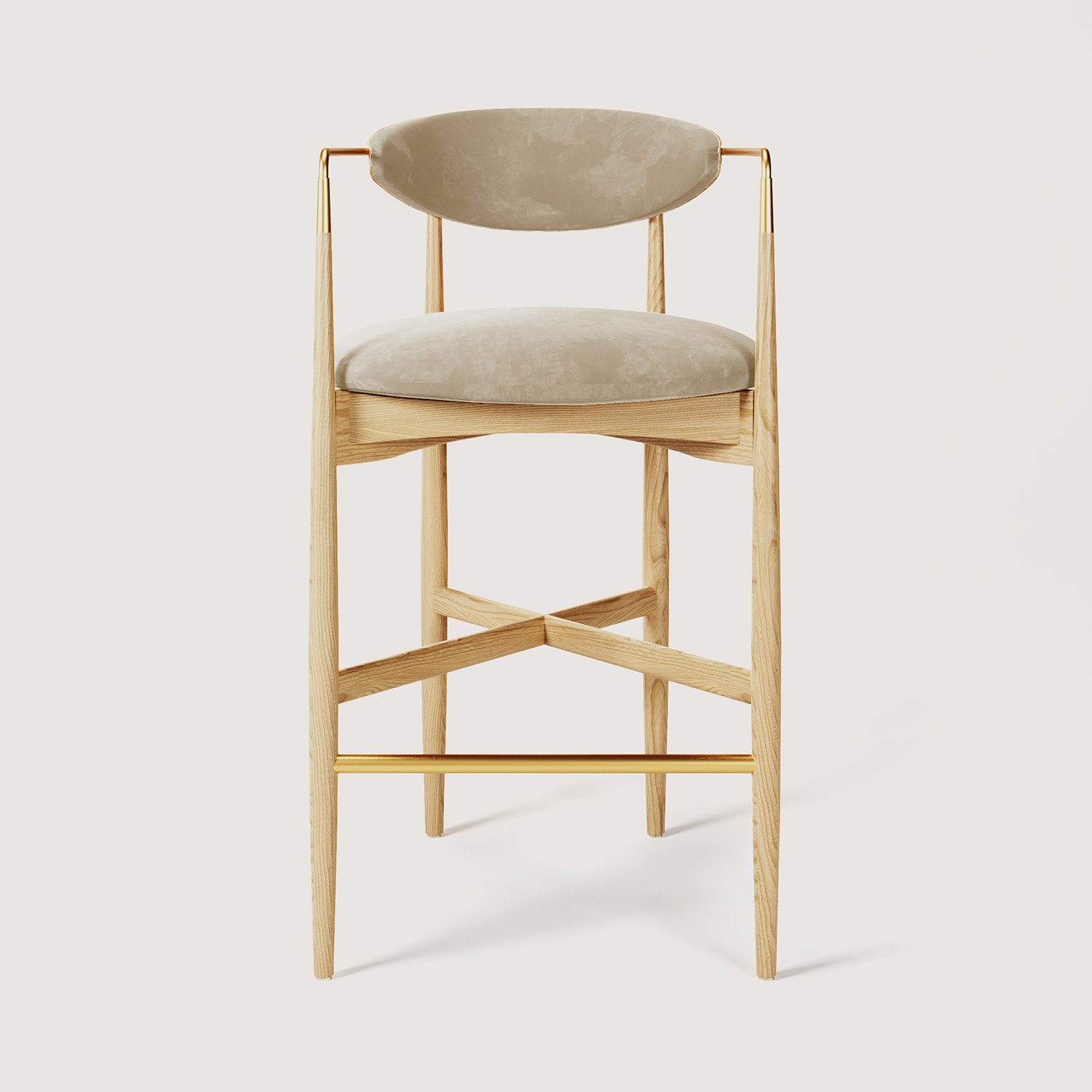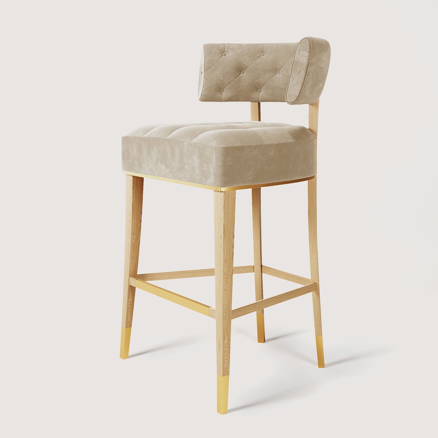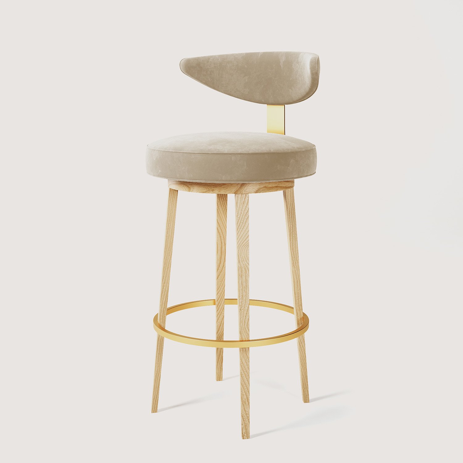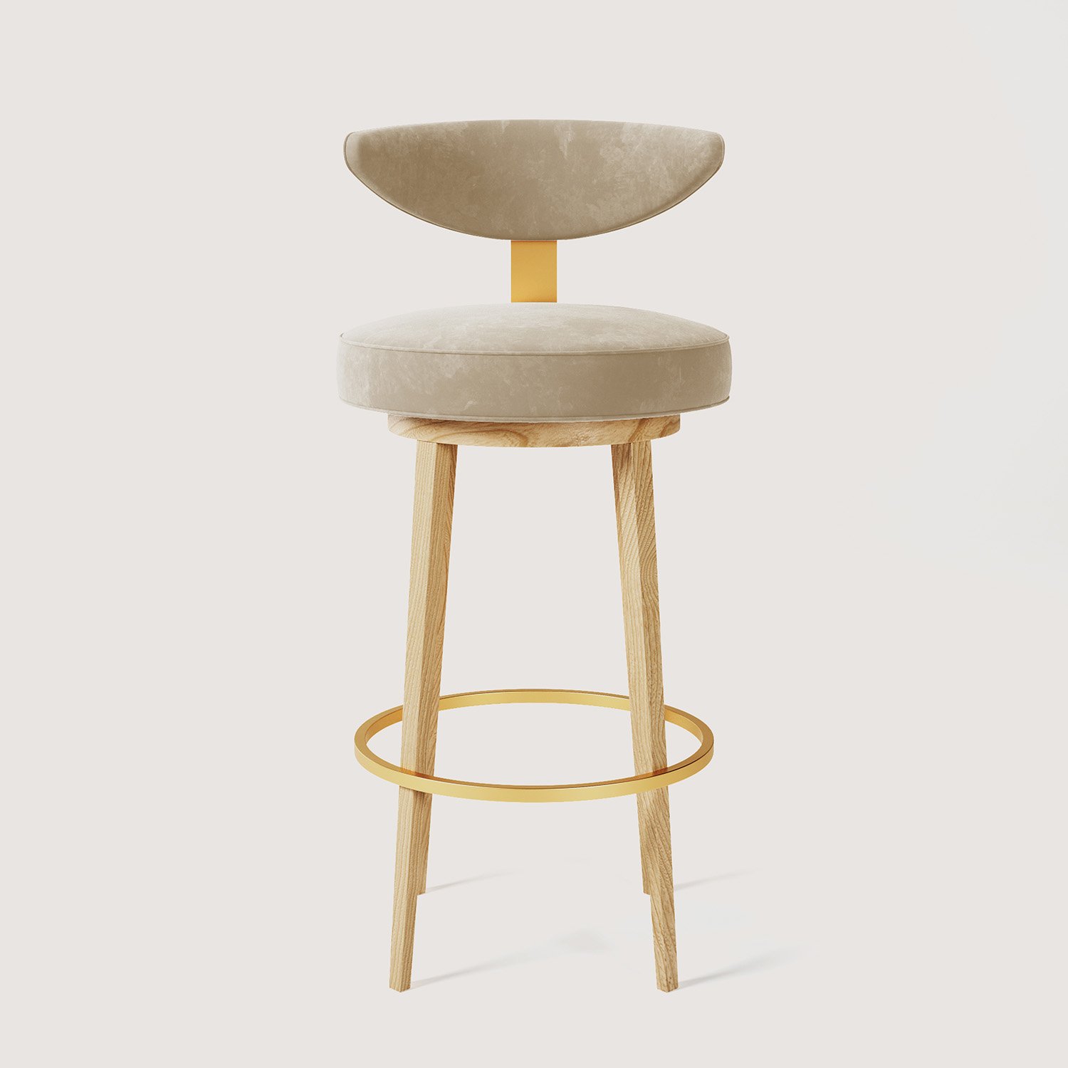PIENO Ahşap & Pirinç Bar Taburesi