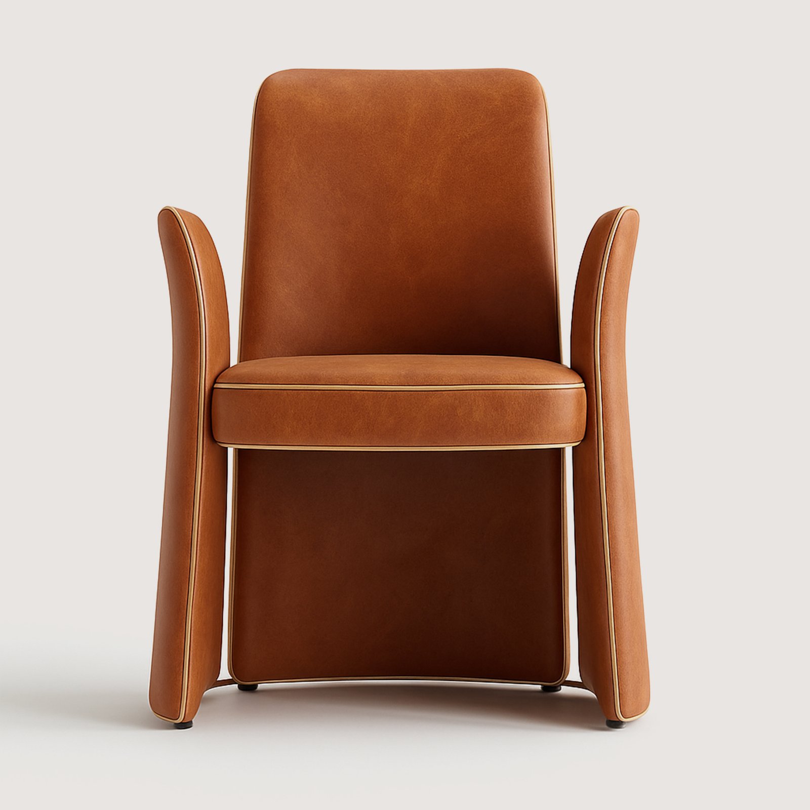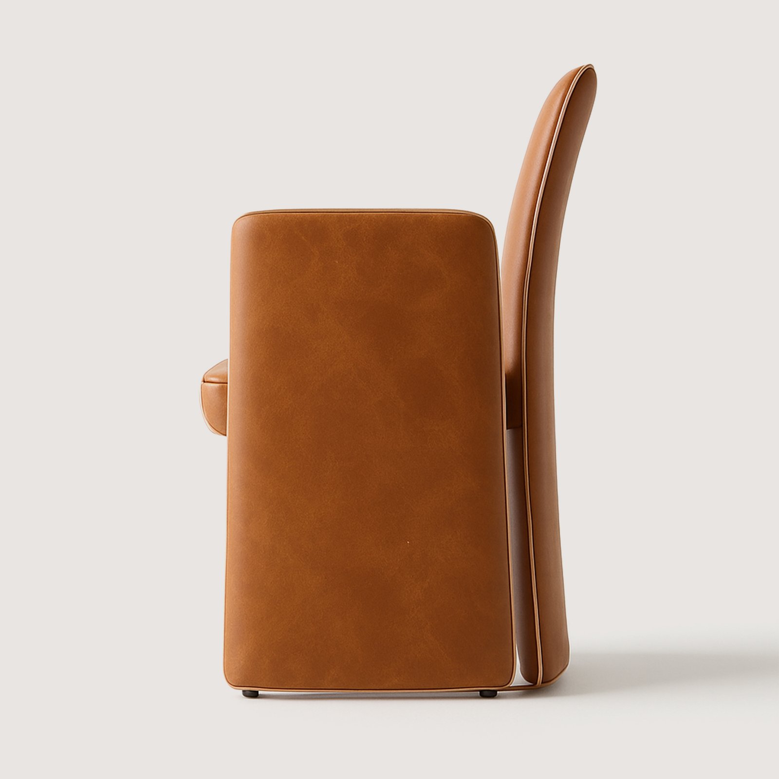 Yüksek kaliteli deri kaplaması, formun sürekliliğini vurgulayarak yüzeyde rafine bir bütünlük sağlar. ARC, modern ve lüks yemek odalarında mekânın atmosferini yumuşatan, zamansız ve dengeli bir estetik sunan bir yemek masası sandalyesidir.
