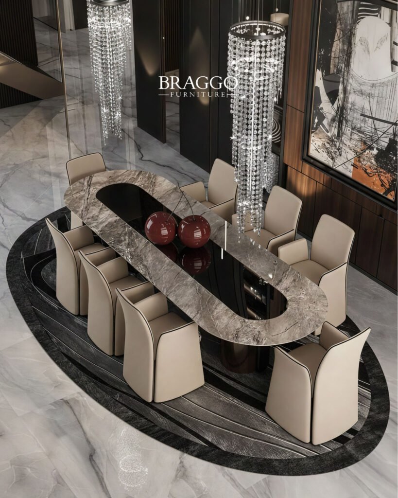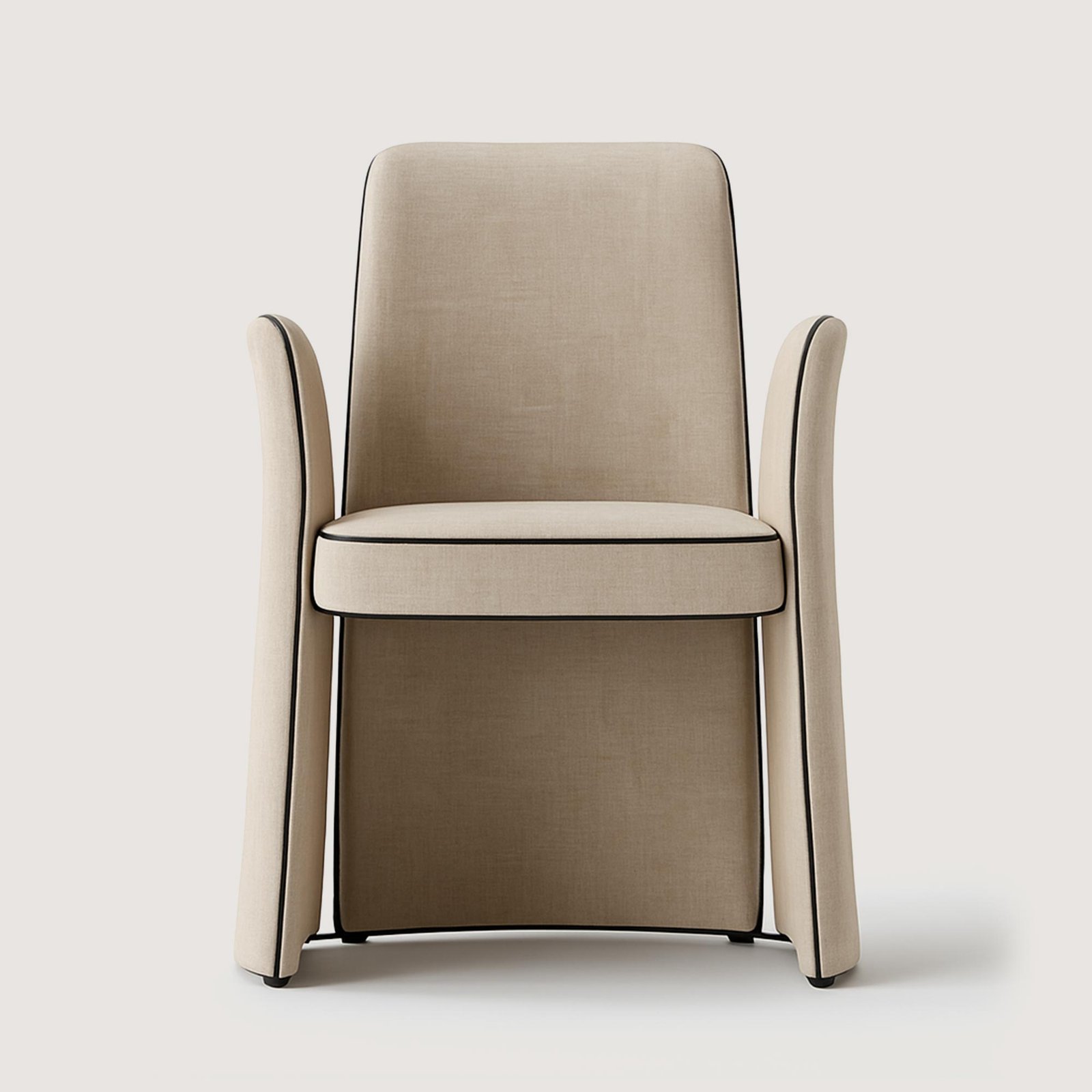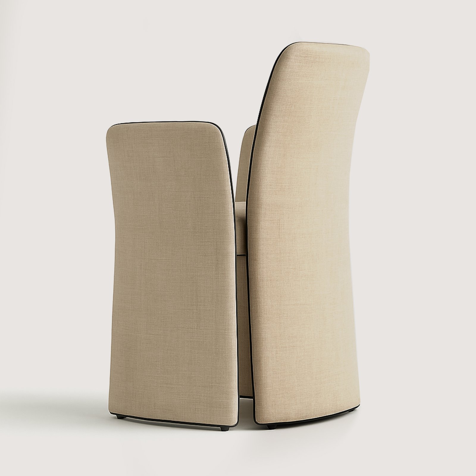 Yüksek kaliteli kumaş yüzey, günlük kullanım konforunu estetik bütünlükle birleştirir. ARC, modern ve lüks yemek odalarında sade ama karakterli bir atmosfer yaratan bir yemek masası sandalyesidir.