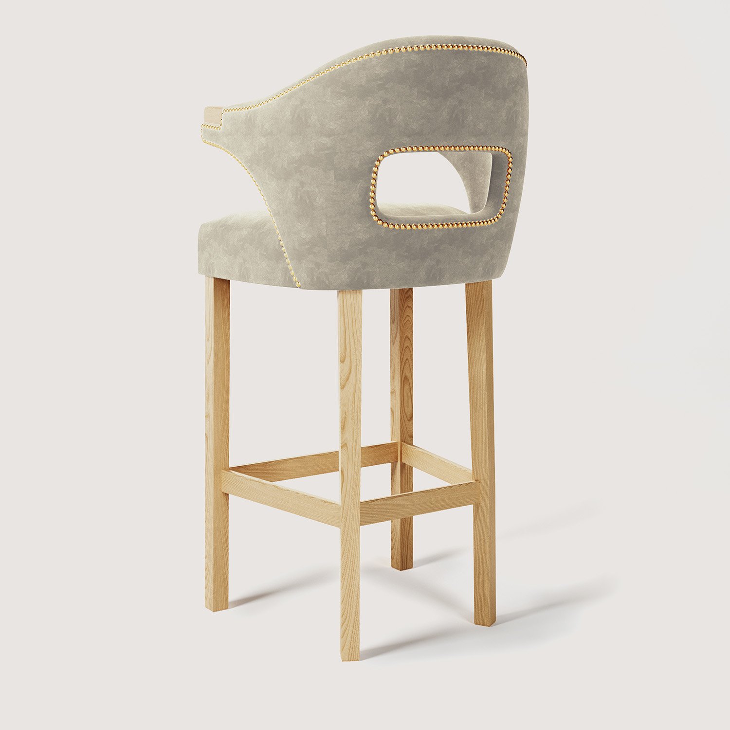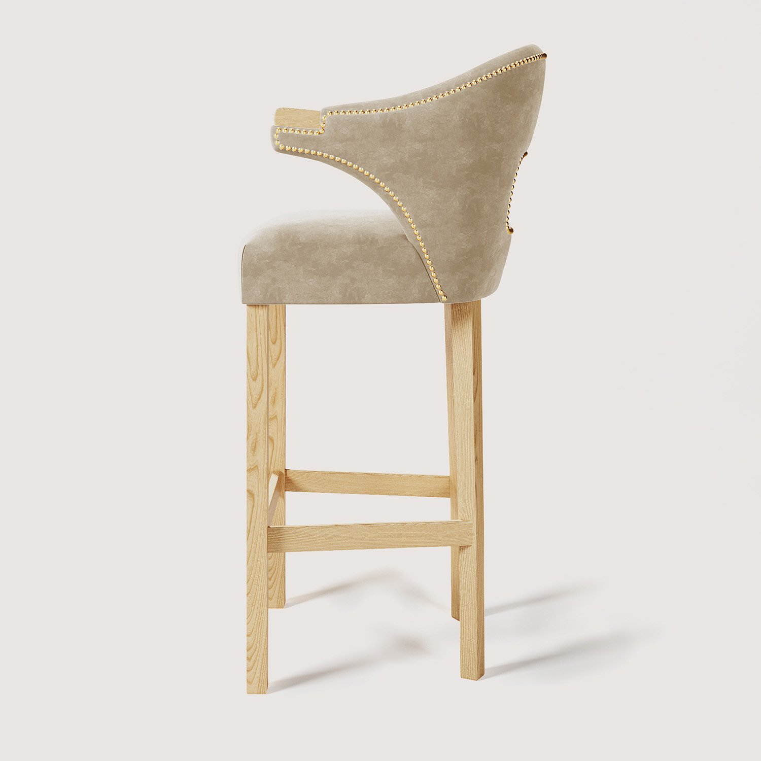 Barbu serisi ahşap bar taburesi glam tarzda bir tasarıma sahiptir. Lüks bar tezgahları için gayet şık bir tamamlayıcı olacaktır. Minder ve sırtlığı sünger üzeri birinci sınıf döşemelik kumaş kaplamalıdır. Dayanıklı ve uzun ömürlü bir ağaç olan meşe ağacından ürettiğimiz bar taburesi, yoğun trafiğe sahip iç mekanlar içinde kullanıma uygundur.