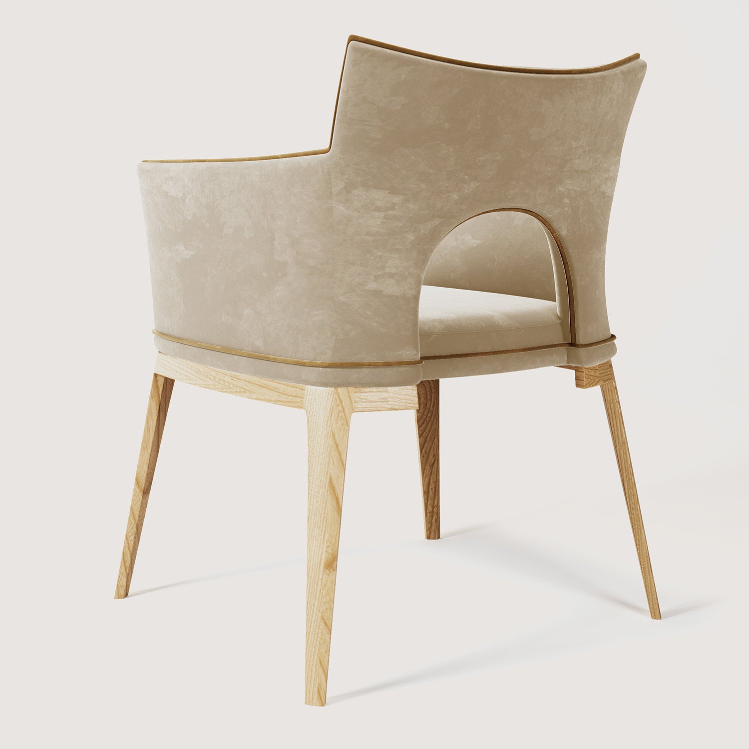 Beron serisi ahşap sandalye, modern bir tasarıma sahiptir. Ayakları, doğal ağaçtan imal edilir. Kadife kumaştan imal edilen minder, kolçaklar ve sırtlığını çepeçevre dolanan biye detayı ile zarif bir görünüme sahiptir.