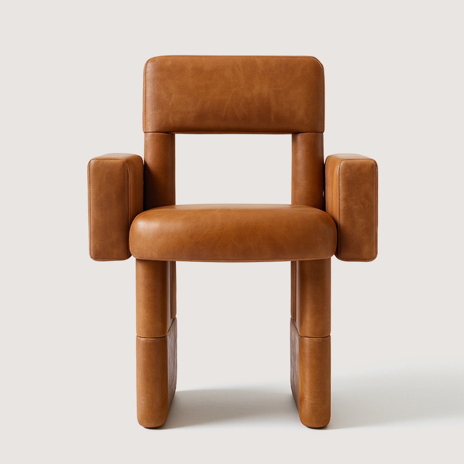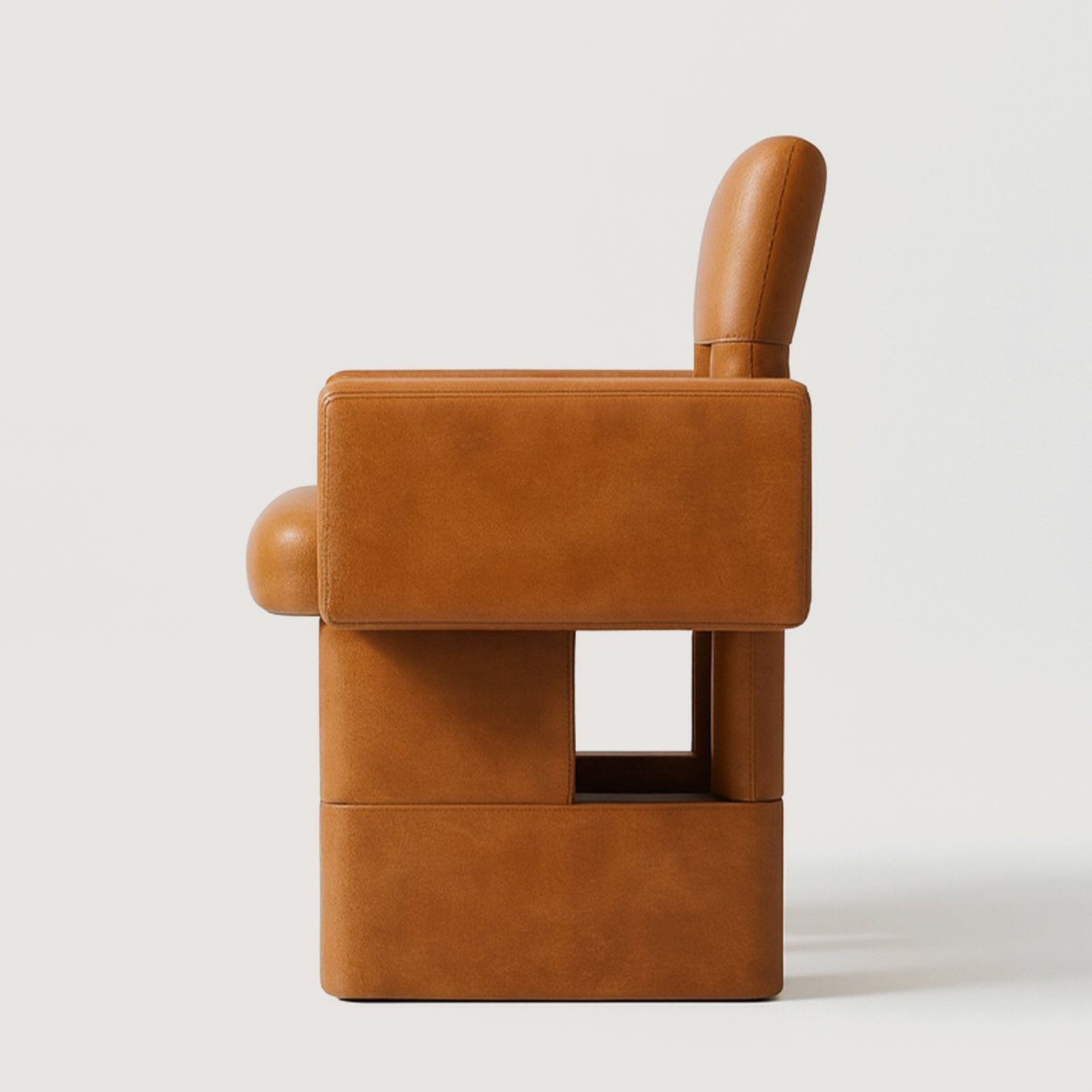 Yüksek kaliteli deri kaplaması, keskin formun sertliğini yumuşatarak dokunsal konfor ile görsel ağırlık arasında dengeli bir ilişki kurar. BLOK, modern ve lüks yemek odalarında mekâna güçlü bir karakter kazandıran, mimari etkisi yüksek ve zamansız bir yemek masası sandalyesi olarak öne çıkar.