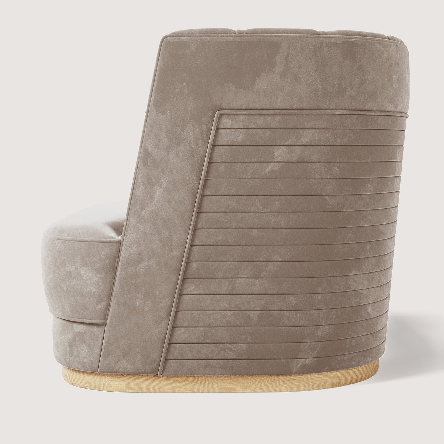 Bogata serisi kumaş koltuk, modern hatları, kapitoneli sırt detayı ve arkasındaki çizgili döşemesi ve bazasındaki pirinç renk detayı ile şık ve güçlü bir görünüme sahiptir. Restoran, bar ve cafe gibi mekanlarda kullanıma uygundur. Ahşap konstrüksiyon iskeleti, sünger üzeri birinci kalite döşemelik kumaş kaplanarak imal edilir. Boncuk elyaflı rahat bir kırlenti vardır.