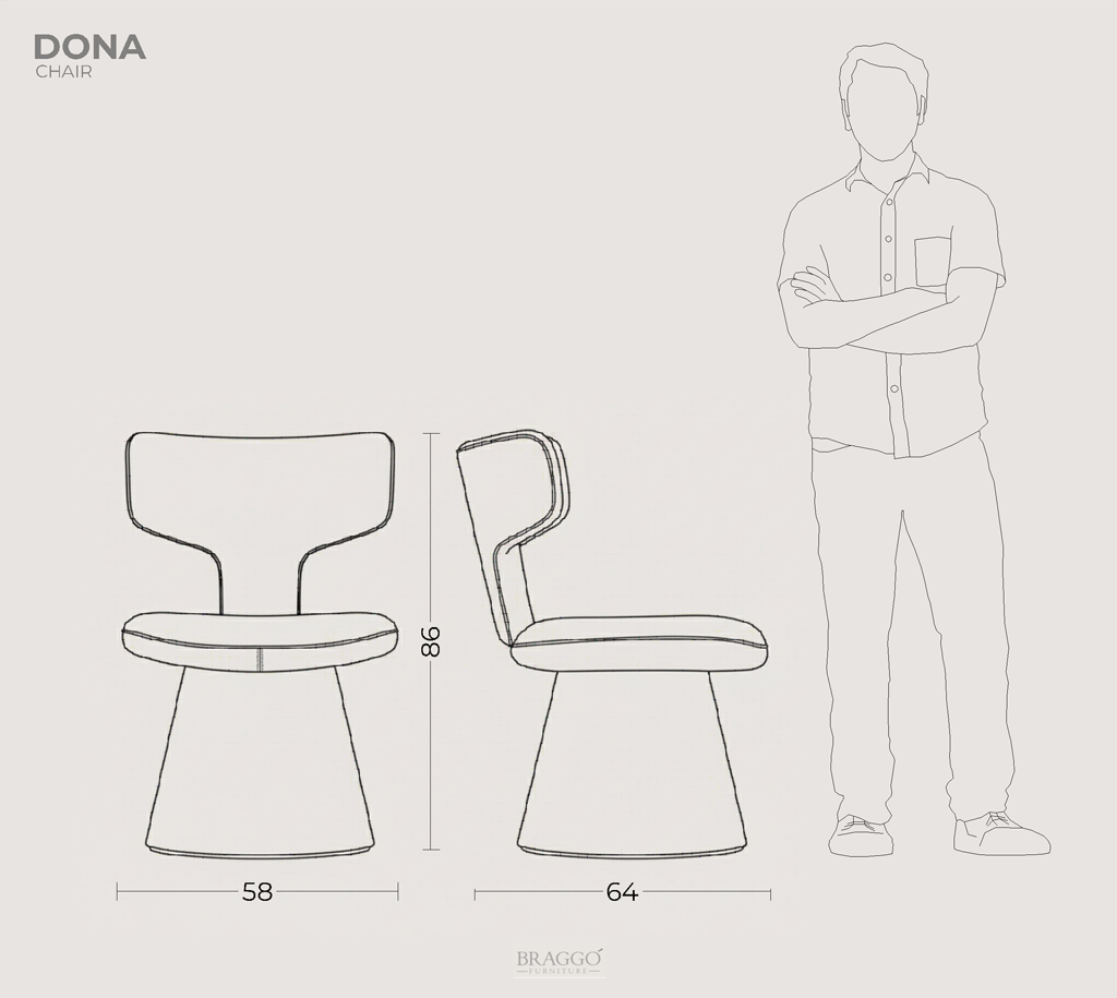 DONA, dengeli oranları ve sade form diliyle contemporary modern tasarımın zamansız bir yorumudur. Kadife kumaş, tasarımın yalın yapısına yumuşaklık ve görsel derinlik kazandırır.