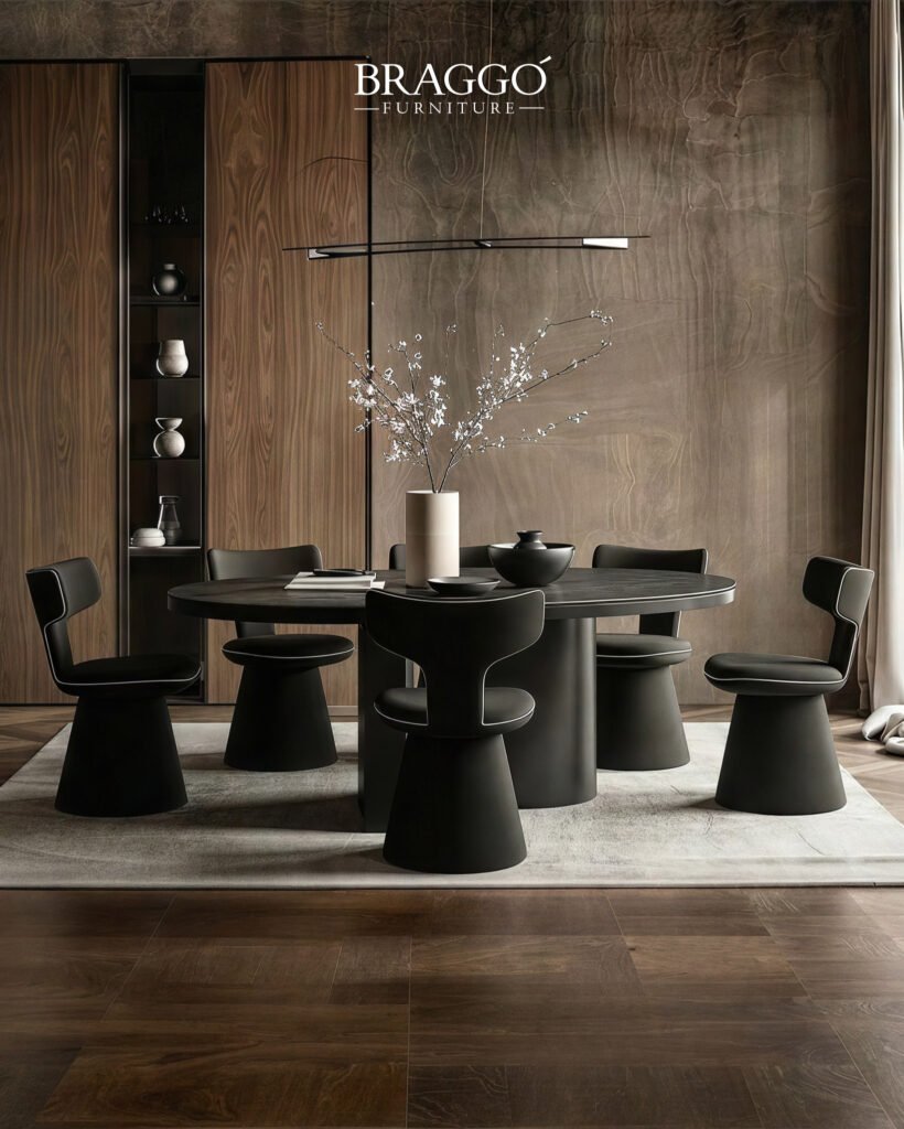 Yüksek kaliteli kadife kaplama, DONA’nın sakin siluetini sıcak bir yüzey hissiyle tamamlar. DONA, modern ve lüks yemek odalarında mekânın atmosferini yormadan zenginleştiren, zarif bir yemek masası sandalyesidir.