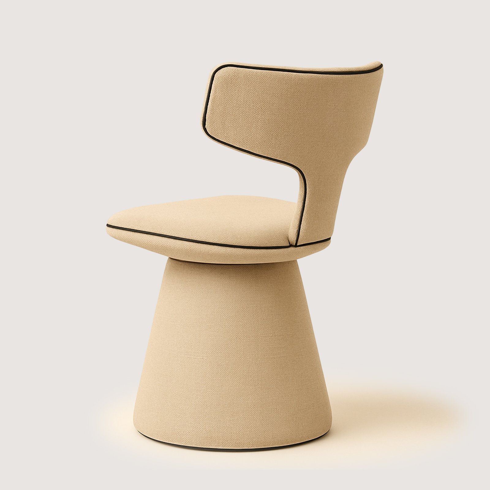 DONA, sade form dili ve dengeli oranlarıyla contemporary modern tasarımın zamansız bir temsilidir. Kumaş kaplama, tasarımın yalın yapısını ön plana çıkararak mekânda sakin ve doğal bir etki yaratır.