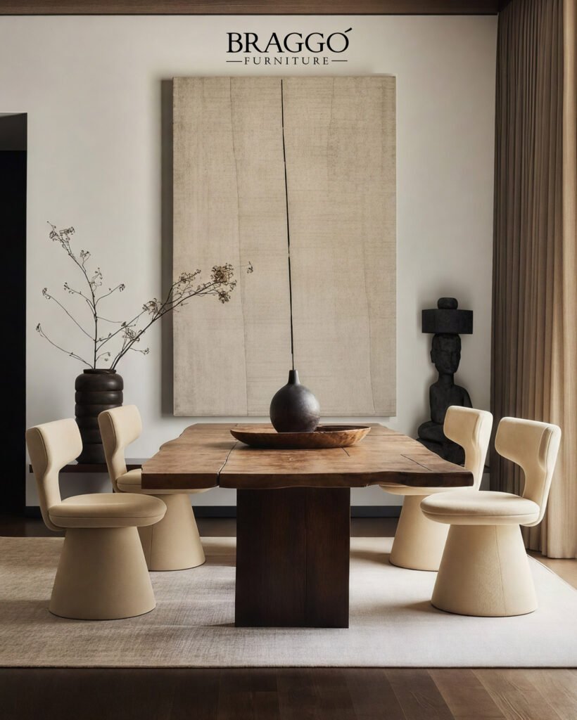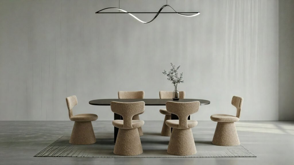 Yüksek kaliteli kumaş yüzey, görsel sadelik ile konforu bir araya getirir. DONA, modern ve lüks yemek odalarında mekânın genel atmosferini bozmadan tamamlayan, dengeli ve rafine bir yemek masası sandalyesidir.