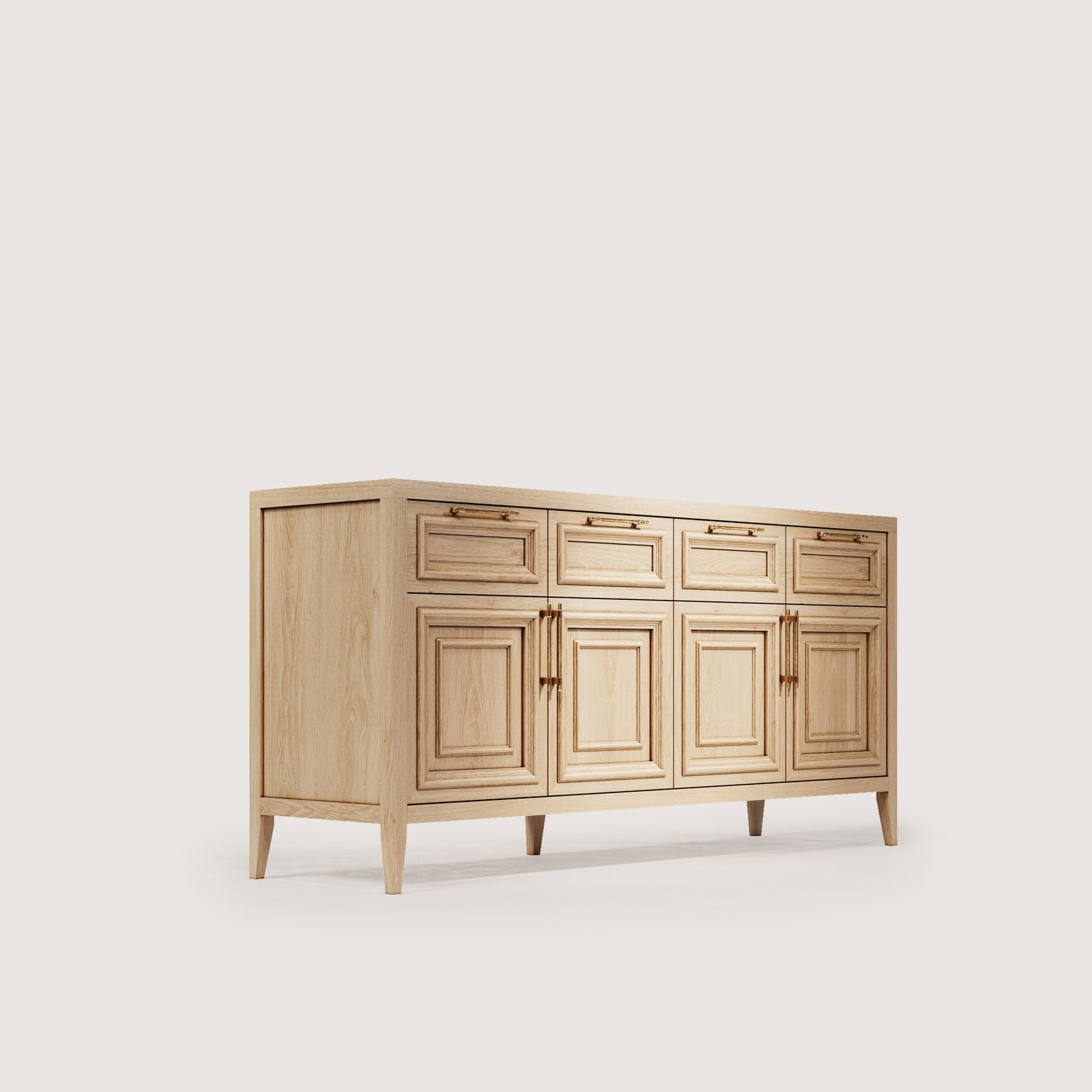 DUPONDE PIET Konsol, klasik çizgileriyle country tarzda bir konsoldur. Kapak bordürleri ve metal kulpları konsola şık bir hava katarken meşe ağacının güzel dokusu ile rüstik bir görünüme sahiptir. El işçiliği ile üretilen konsolun gövde ve kapakları MDF üzeri doğal meşe kaplamalıdır. Çıta ve bordürleri ise masif meşe ağacından imal edilir. Üst kısmı 3 çekmeceli, alt kısmı 3 kapaklı dolaptır. Çekmeceleri tam açılım tandem raylıdır. Meşe ağacının güzel dokusunu öne çıkartmak için yüzeyde fırçalama işlemi uygulanır. Fırça izlerinin belirgin olması içinse yüzeyde monocoat ahşap yağı uygulaması yapılmaktadır. Konsolu oluşturan kaliteli malzemeler ile sizden sonraki nesillere miras kalacak dayanımdadır. Kolaylıkla tamir edilebilmesi de konsolun, kullanım süresini artıran özelliklerindendir.