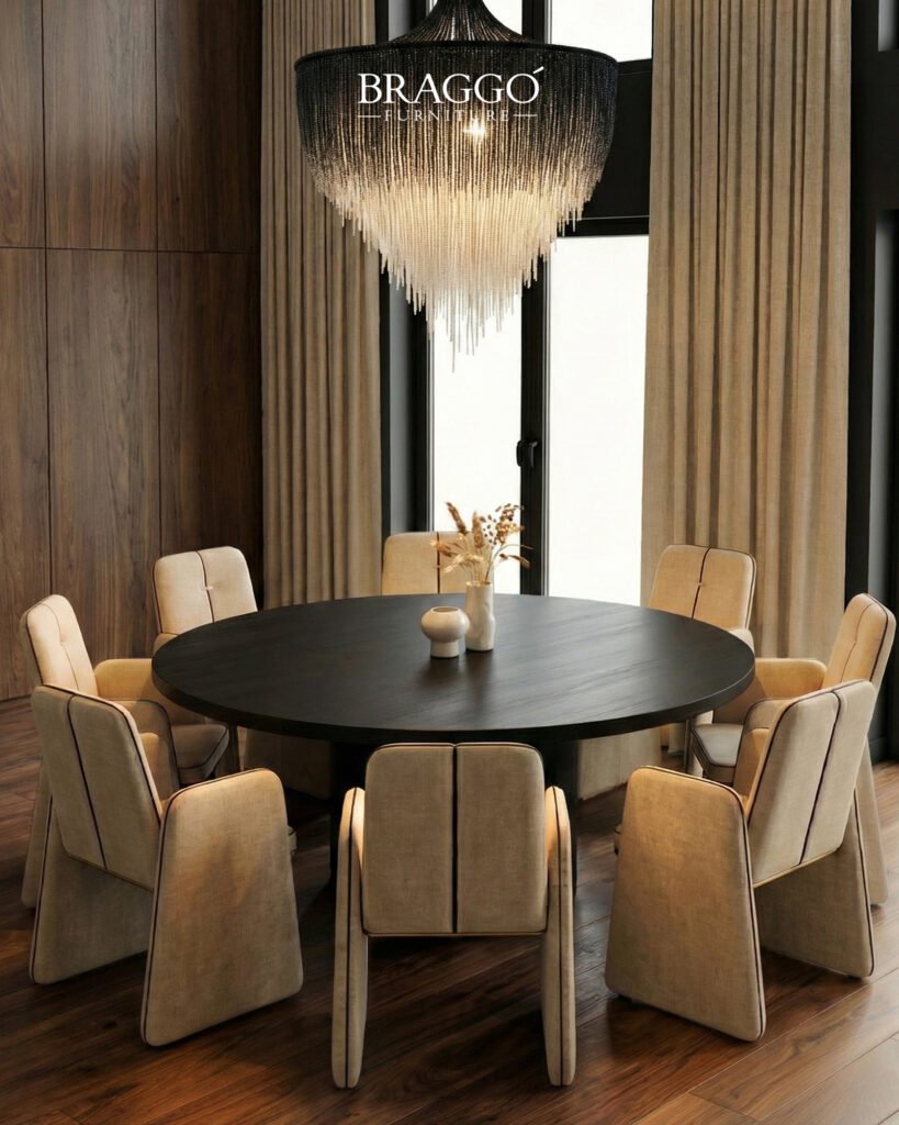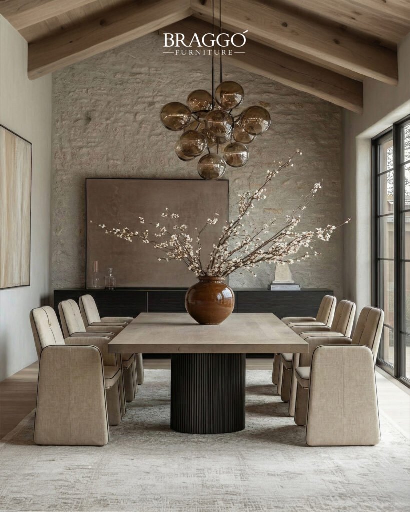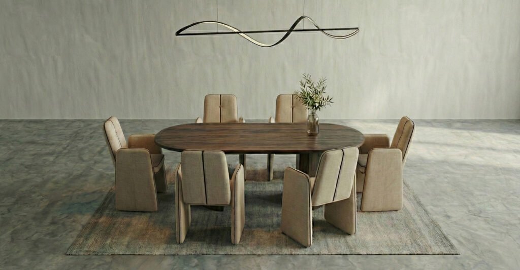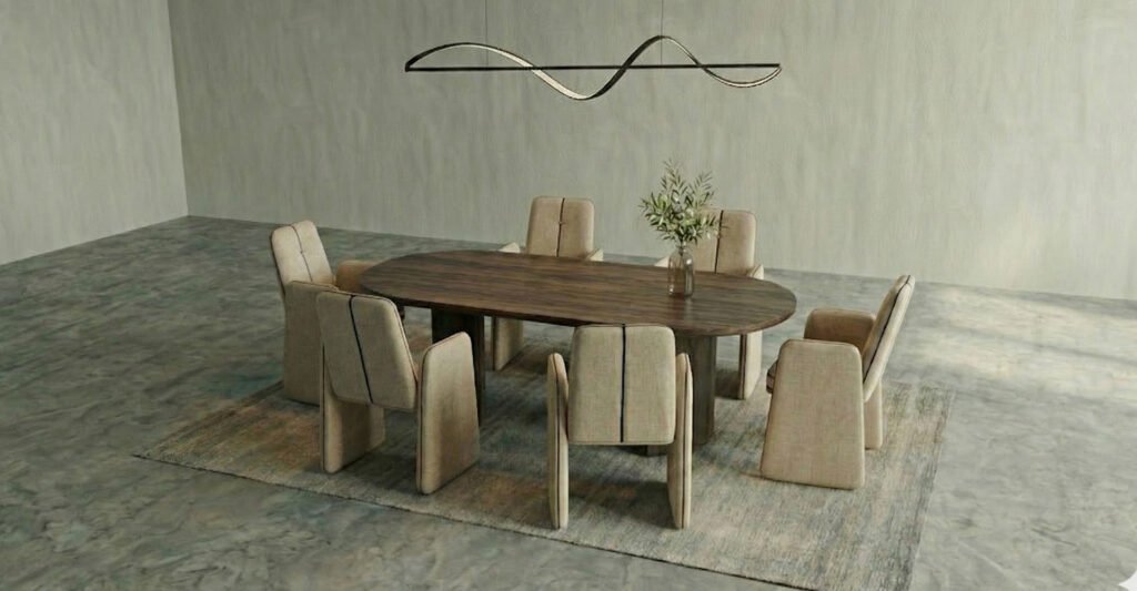 Yüksek kaliteli kumaş yüzey, strüktürel formu sade bir konforla tamamlar. MASS, modern ve lüks yemek odalarında güçlü duruşunu koruyan ancak mekâna sıcaklık katan bir yemek masası sandalyesidir.