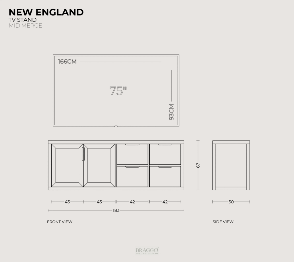 NEW ENGLAND CALIFORNIA BURL TV Sehpası, cam kapakları ve gold renk gömme kanal kulp detayı ile zarif bir görünümü vardır. Tüm yüzeylerde kullanılan kök kaplamanın güzelliği TV sehpasına özel bir görünüm katmaktadır. Bu kök kaplama İtalyan Alpi markasının lignum serisi olan özel bir ağaç kaplama türüdür. 4 çekmeceli ve 2 cam kapaklıdır. Çekmeceler, tam açılım tandem raylıdır. Camlar bronz renk ve kırılmaya dayanımlı temperlidir.