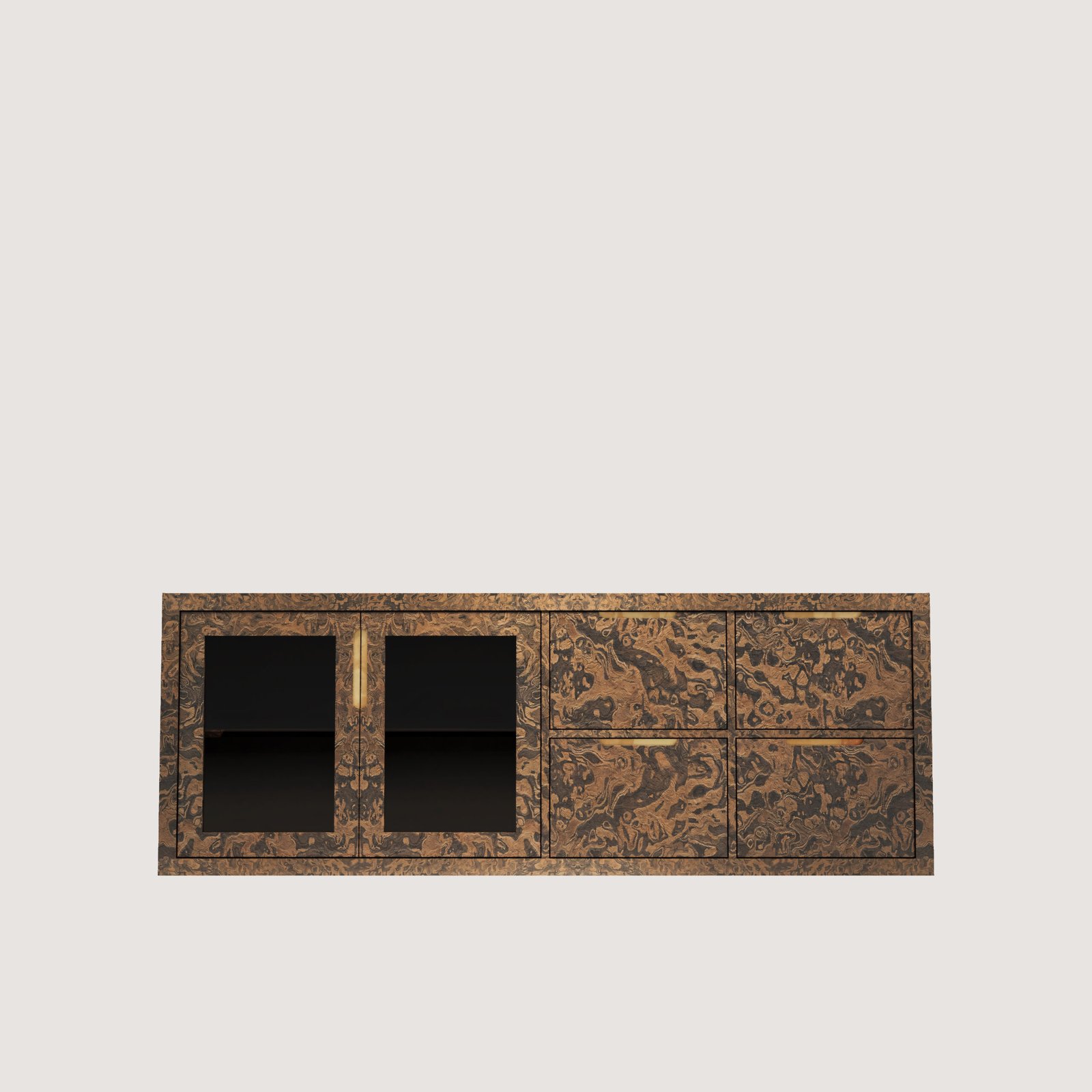 Gövde: MDF, ALPI California Burl Ahşap Kaplama, Bronz Temperli Cam