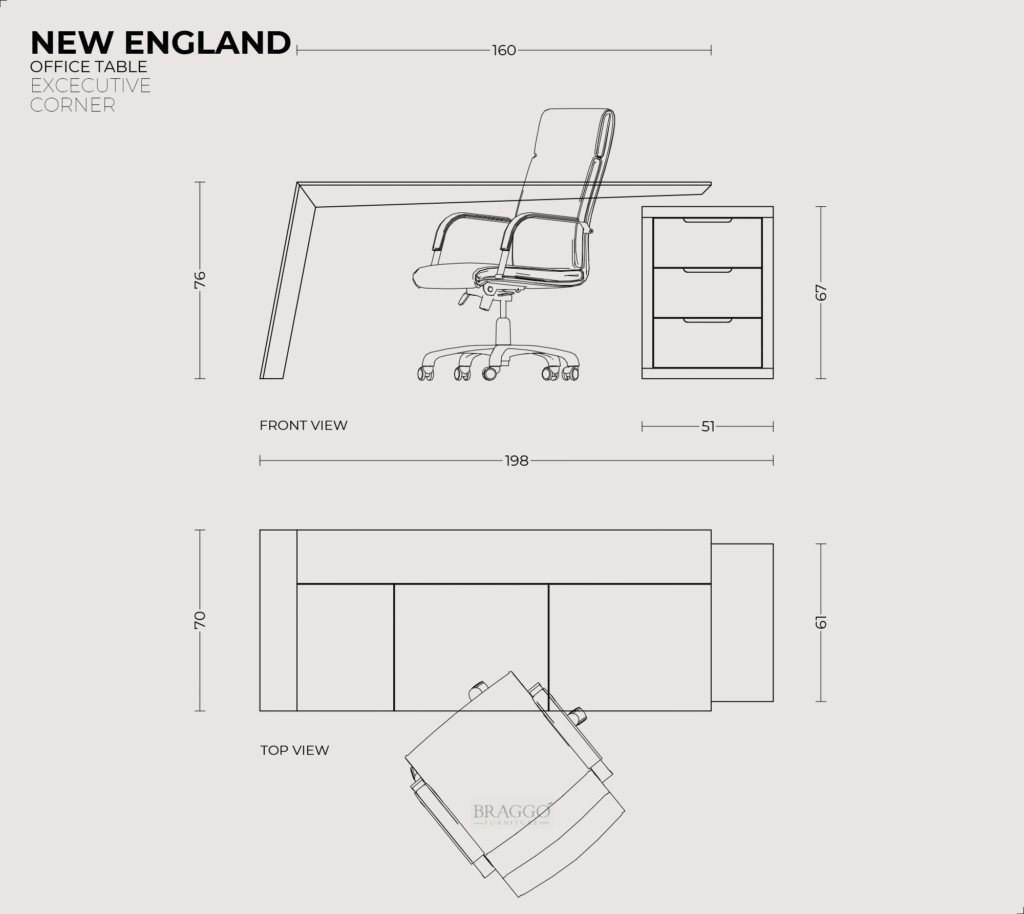 NEW ENGLAND ELM Ofis Masası, tablasının özel tasarımı ile heyecan verici bir görünüme sahiptir. Tablanın mono blok formu içi demir konstrüksiyon ile desteklenmiştir ve son derece sağlamdır. Tabla üstü ve çekmece klapaları İtalyan ALPI markasının özel serisinden olan “Burl Elm” ahşap kaplaması ile yapılmıştır. Tabla üstünde evrak ve kalem saklamak için gizli kapağı vardır. Kesonu 3 çekmelidir. Çekmeceler tam açılım tandem raylıdır.