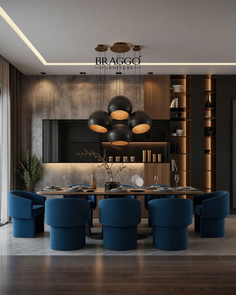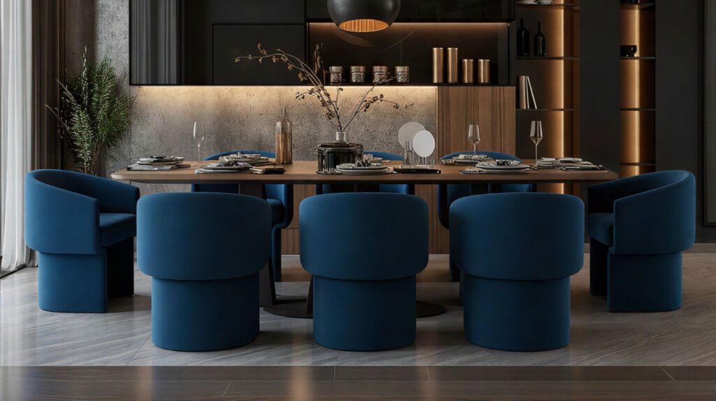 PILLAR, modern ve lüks yemek odalarında, mekânın karakterini güçlendiren, aynı zamanda dokunsal konforu artıran bir yemek masası sandalyesi olarak dikkat çeker.