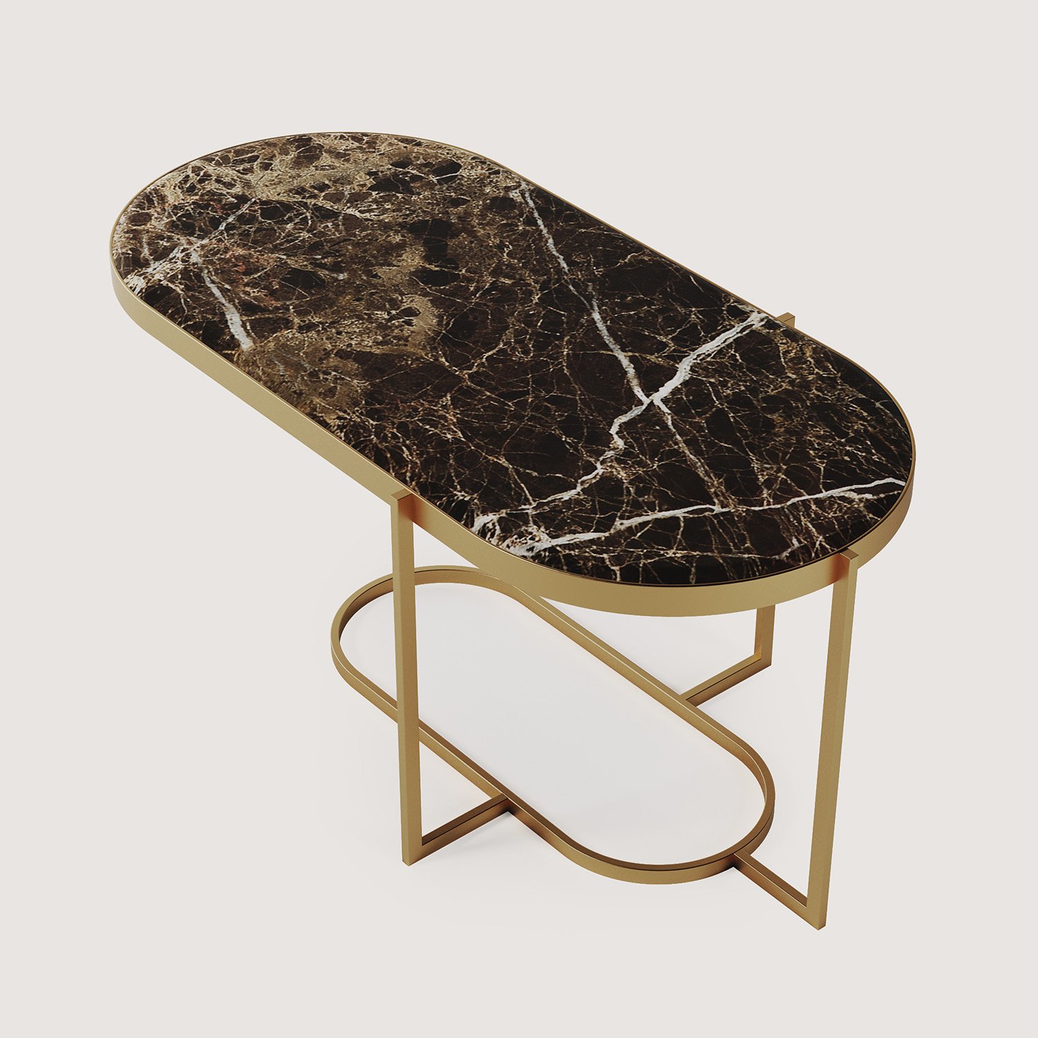 Serva Sehpa, evinize sofistike bir dokunuş katmak için tasarlandı. Tablası, doğal güzelliği ve eşsiz desenleriyle Emperador mermerden yapılmıştır. Bu özel mermer, koyu kahverengi tonlarıyla her ortamda dikkat çeker ve Serva Sehpa’yı adeta bir sanat eseri haline getirir.