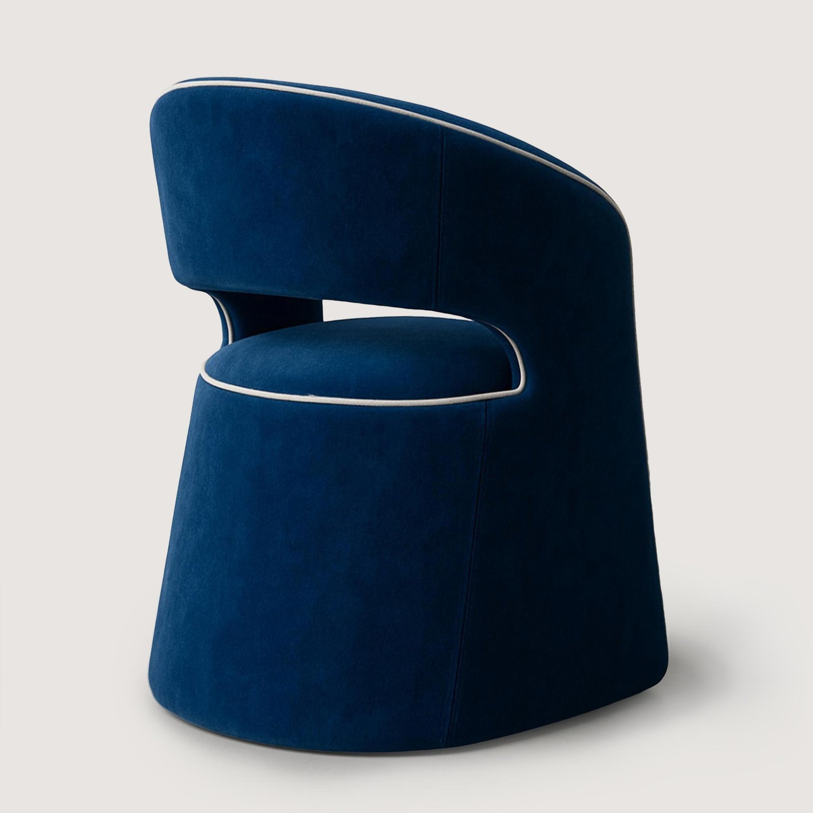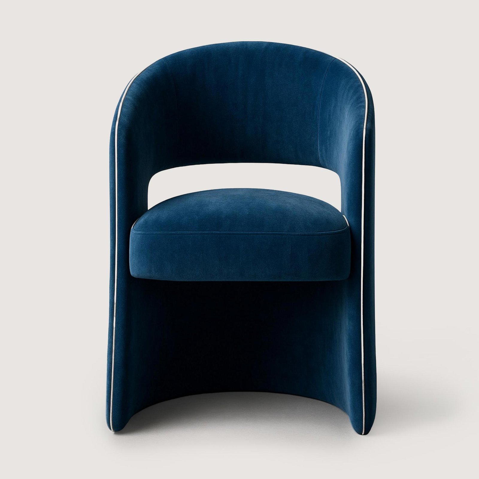 TOLA, contemporary modern tasarım anlayışını yumuşak geçişli ve heykelsi formu üzerinden okuyan bir yemek masası sandalyesidir. Kadife kumaş, tasarımın monoblok yapısını daha sıcak ve davetkâr bir hale getirerek mekânda dengeli bir zarafet oluşturur.