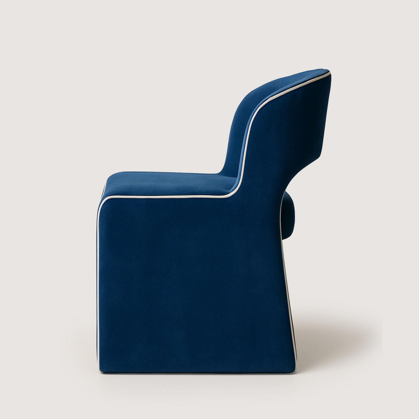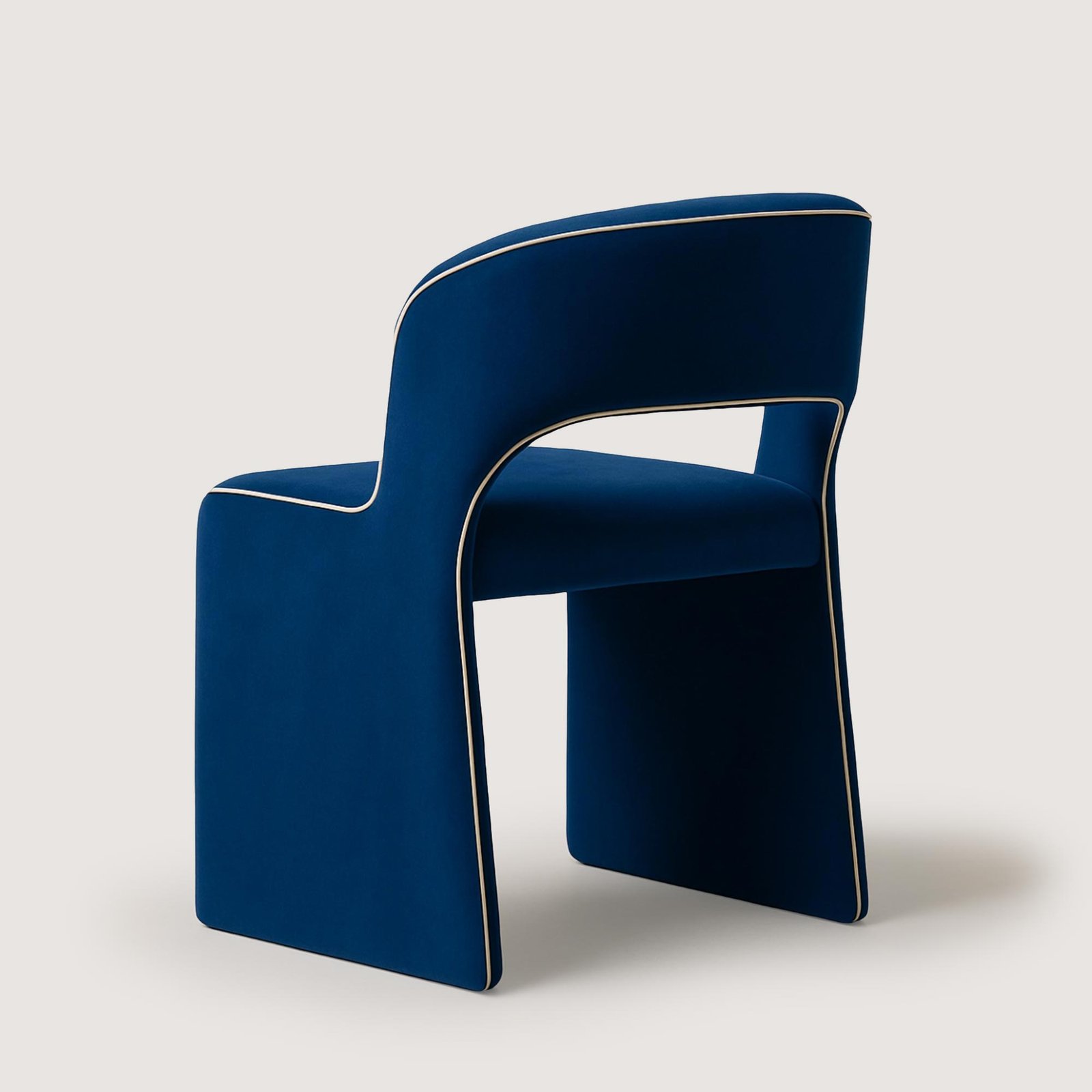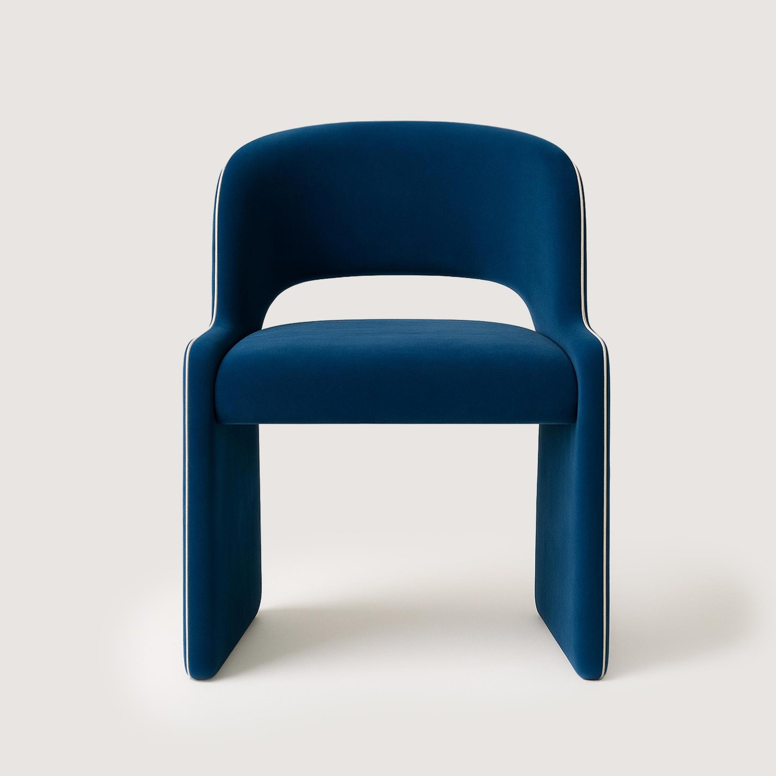 TOLA, contemporary modern tasarım anlayışını yumuşak geçişli ve heykelsi formu üzerinden okuyan bir yemek masası sandalyesidir. Kadife kumaş, tasarımın monoblok yapısını daha sıcak ve davetkâr bir hale getirerek mekânda dengeli bir zarafet oluşturur.