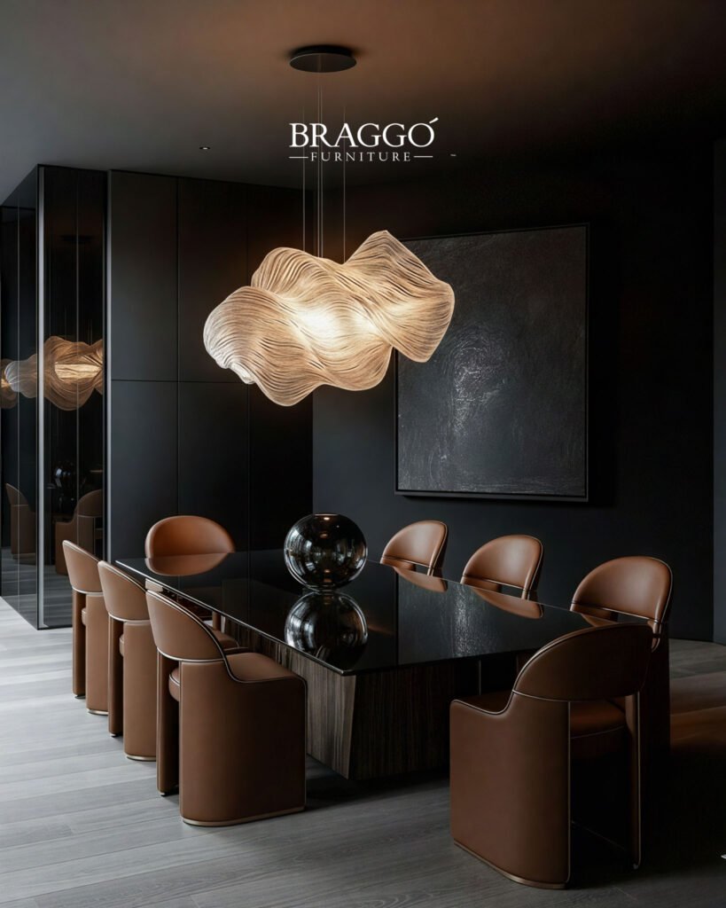 Yüksek kaliteli deri kaplaması, formun akışkan yapısını vurgularken dokunsal konforu ön plana çıkarır. VALENZA, modern ve lüks yemek odalarında mekâna sıcaklık katan, sade çizgileriyle zamansız bir atmosfer yaratan ve mekânsal bütünlüğü güçlendiren bir yemek masası sandalyesidir.