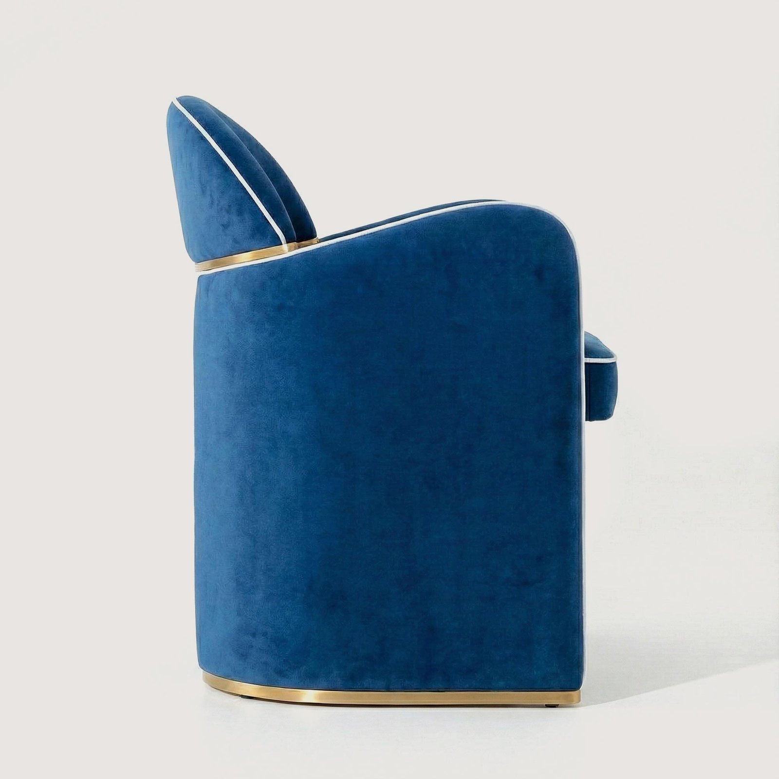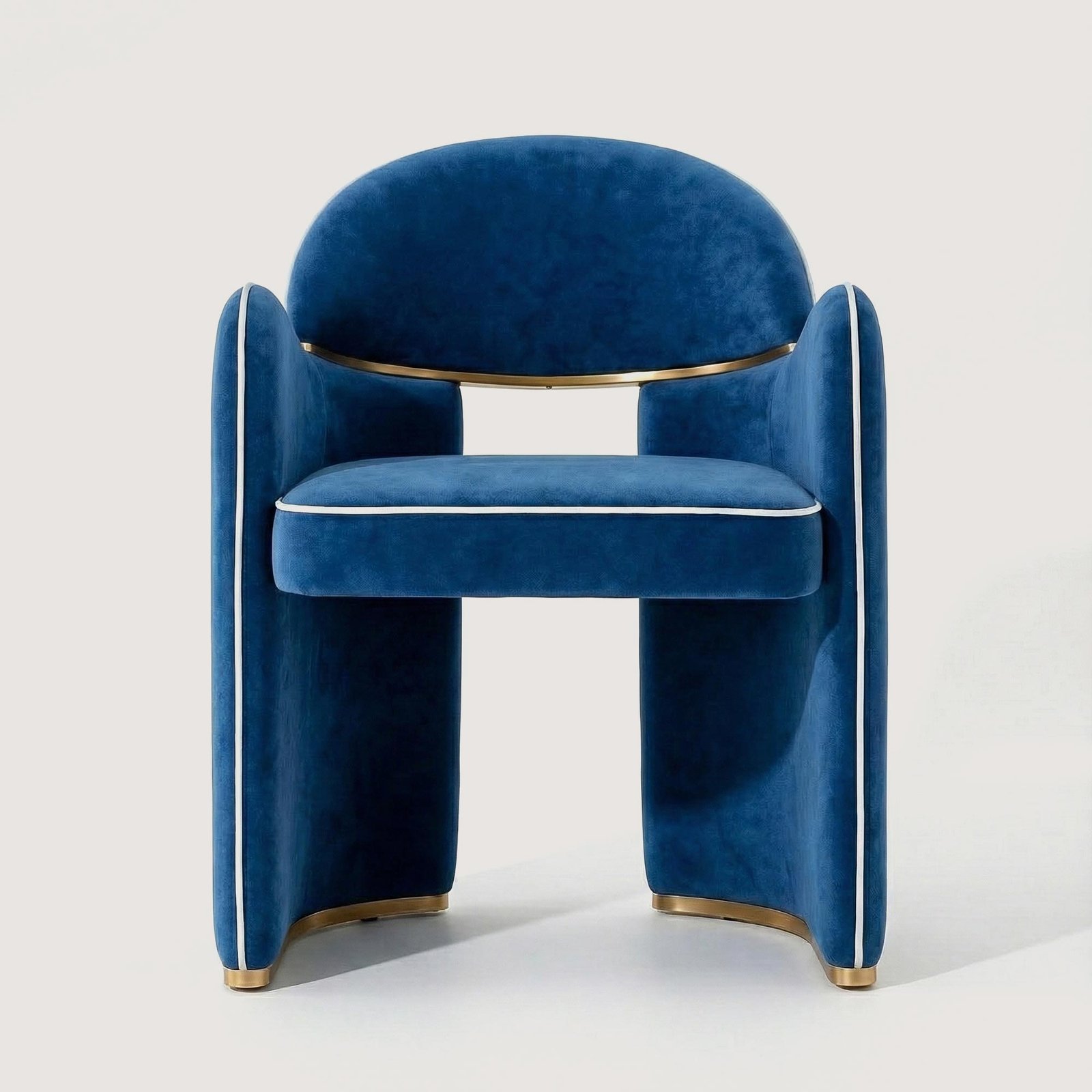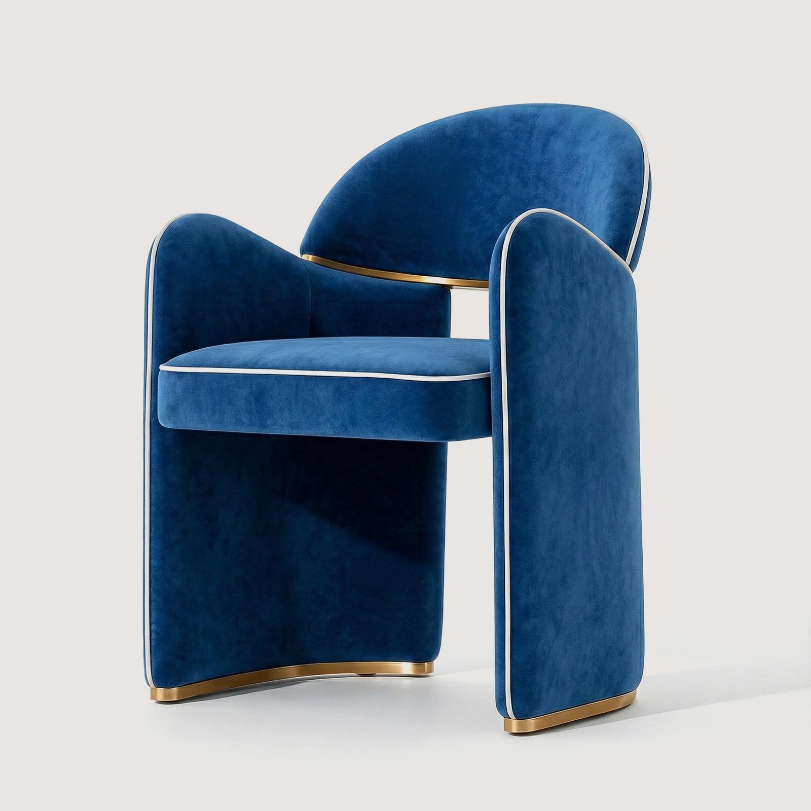 VALENZA, akıcı form dili ve dengeli hacimleriyle contemporary modern bir yemek masası sandalyesidir. Kadife kumaş, tasarımın yumuşak kıvrımlarını ön plana çıkararak mekânda sakin ve sofistike bir siluet oluşturur.
