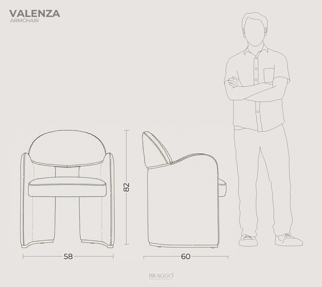 VALENZA, akıcı form dili ve dengeli hacimleriyle contemporary modern tasarımı sade bir zarafetle ele alan bir yemek masası sandalyesidir. Kumaş kaplama, tasarımın yumuşak kıvrımlarını ön plana çıkararak mekânda sakin ve dengeli bir siluet oluşturur.