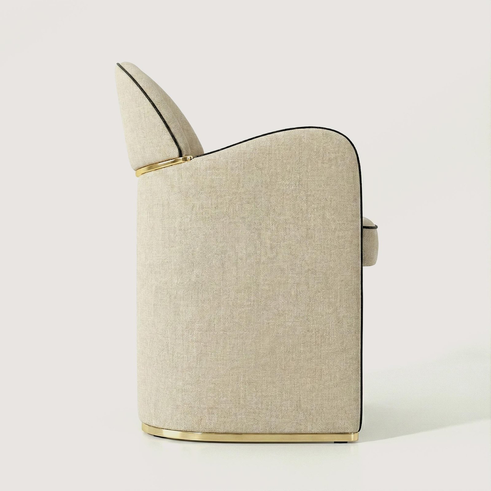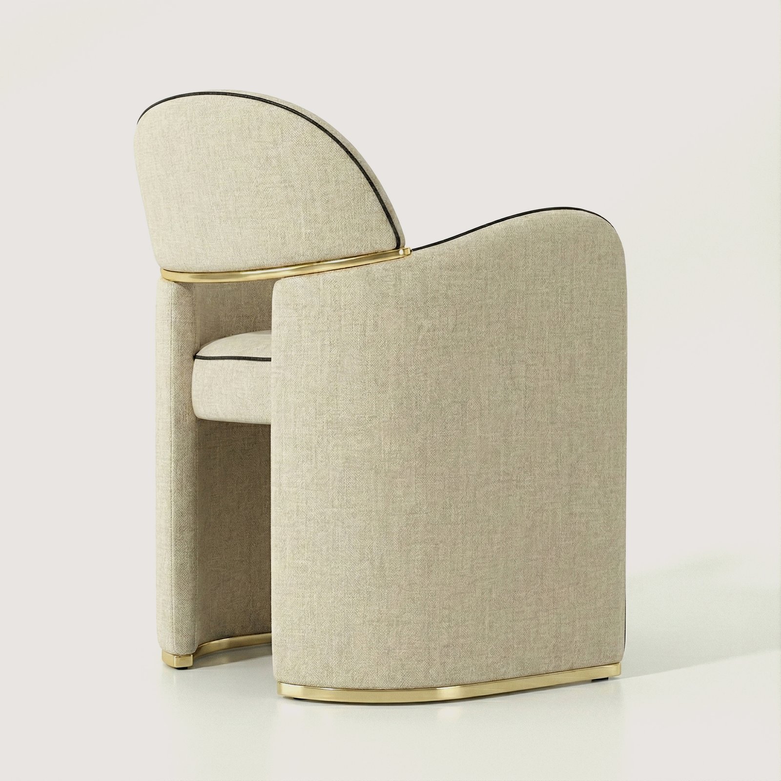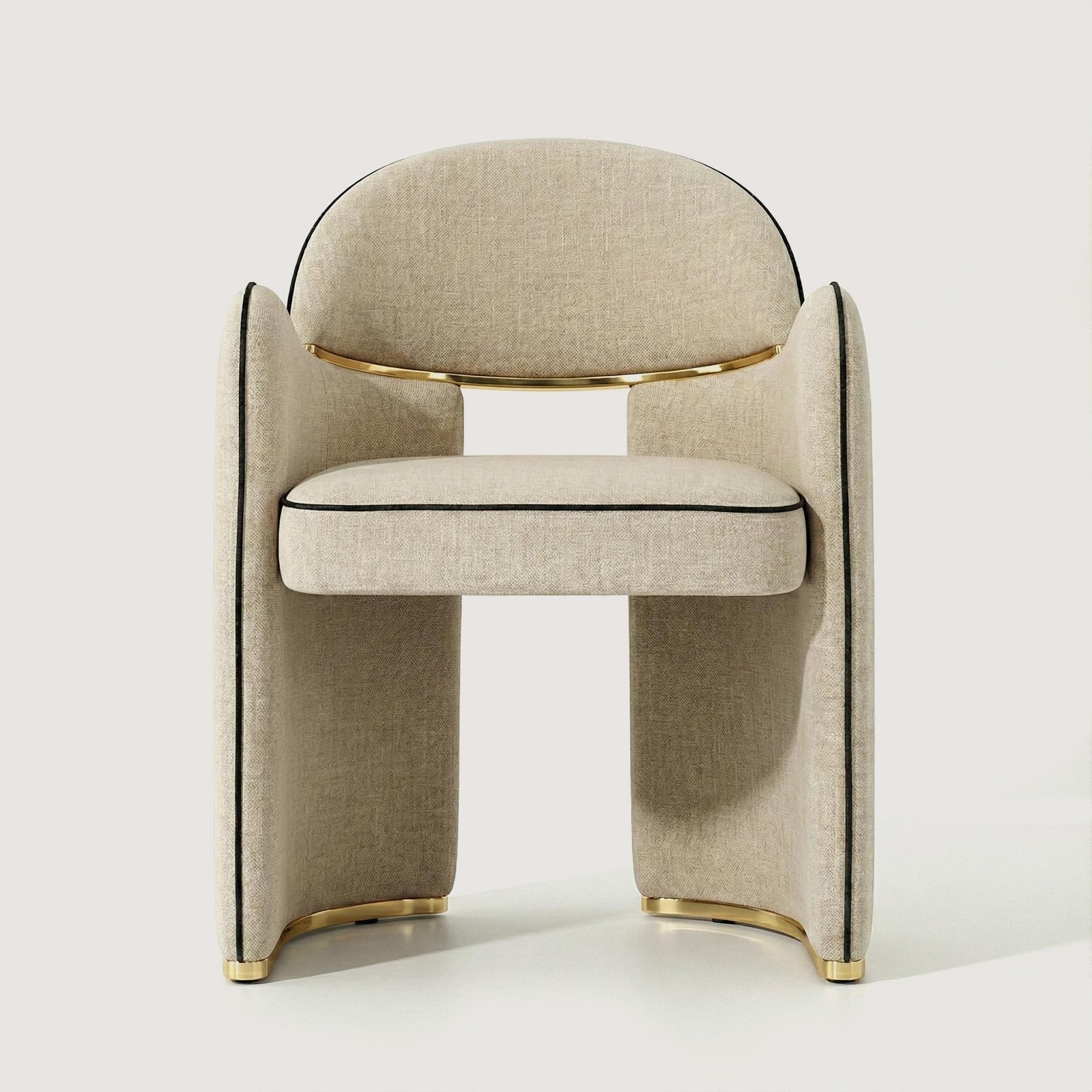 Yüksek kaliteli kumaş yüzey, dokunsal konforu artırırken formun akışkan yapısını net biçimde hissettirir. VALENZA, modern ve lüks yemek odalarında huzurlu ve zamansız bir atmosfer yaratan bir yemek masası sandalyesidir.