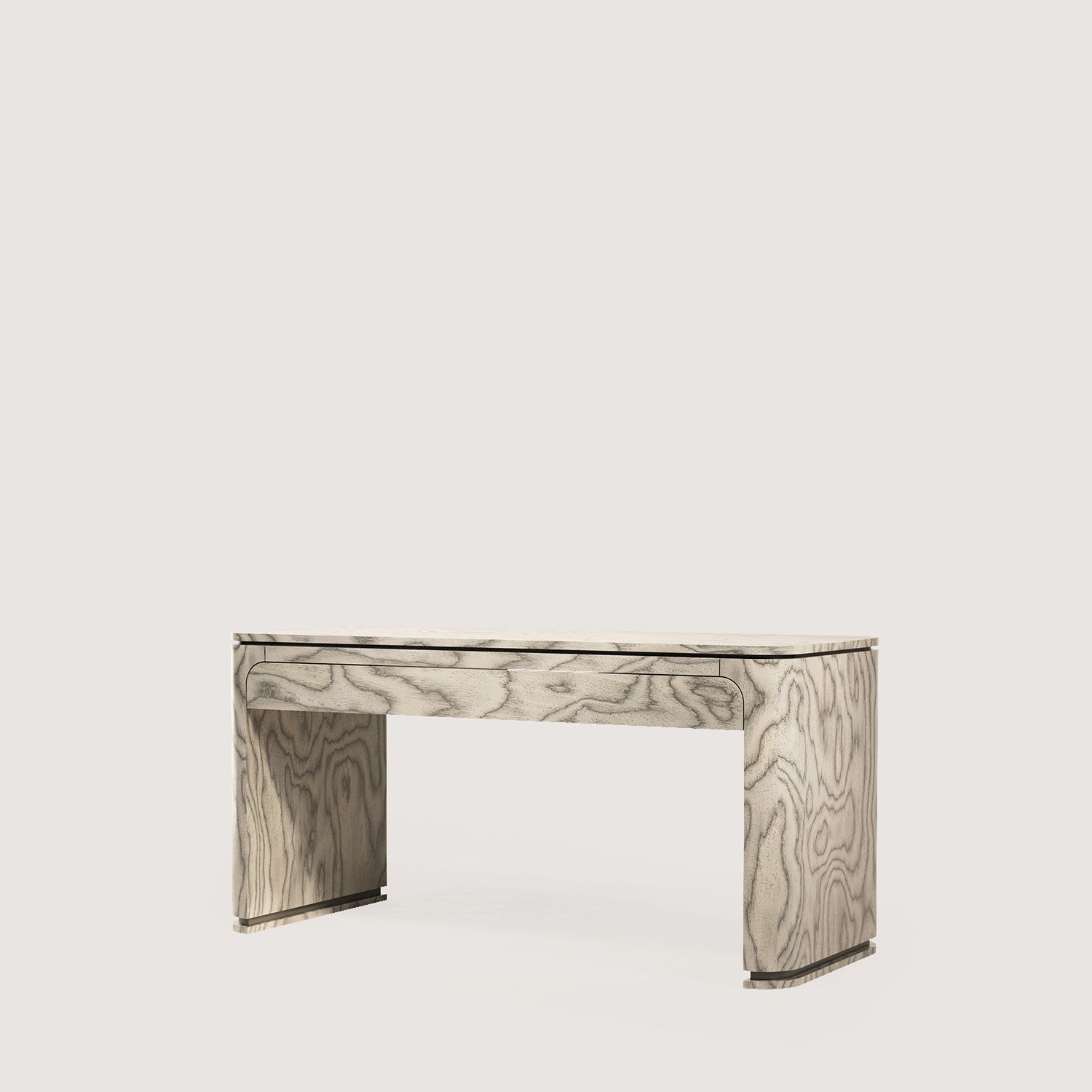 VEGAS E SOTTSASS Ofis Masası, köşeleri bombeli yapısıyla modern bir görünüme sahiptir. İtalyan ALPI markasının özel serisinden olan “Ettore Sottrass Grey” ahşap kaplaması ile son derece özel bir dokusu vardır. 2 çekmecelidir. Çekmeceler tam açılım tandem raylıdır.