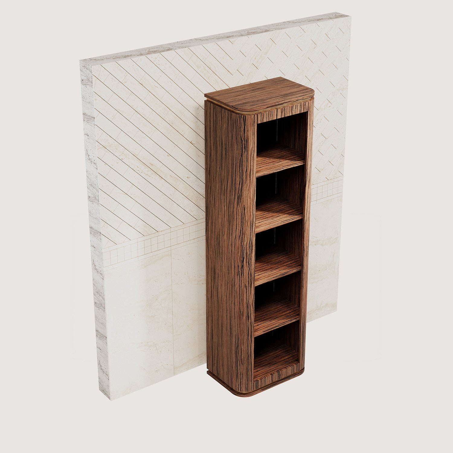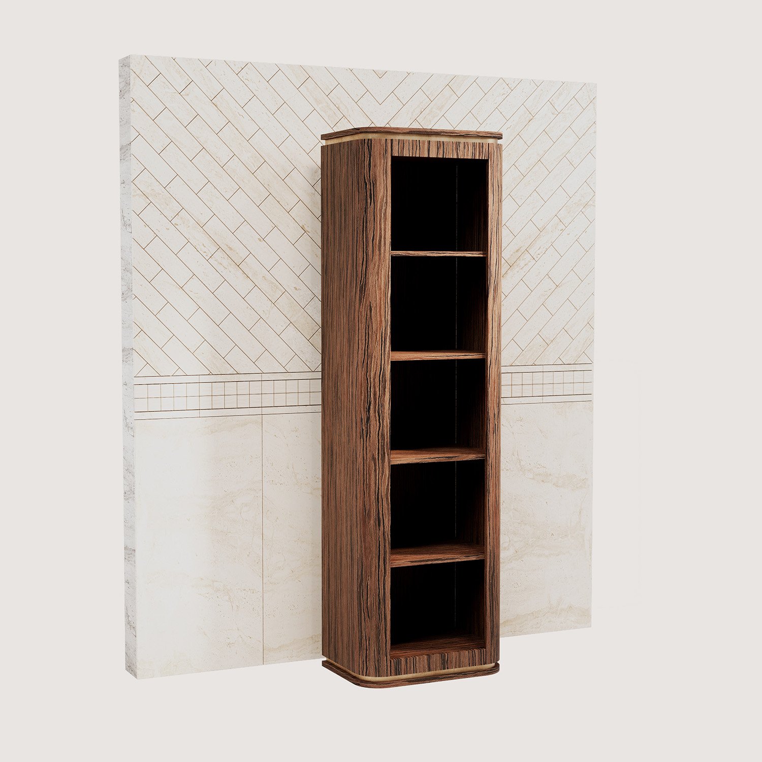 VEGAS JAPANESE CEDAR Banyo Rafı, köşelerinin bombeli yapısıyla modern bir görünüme sahiptir. İtalyan ALPI markasının özel serisinden olan “JAPANESE Cedar” ahşap kaplaması ile son derece özel bir dokusu vardır. 5 raflıdır.