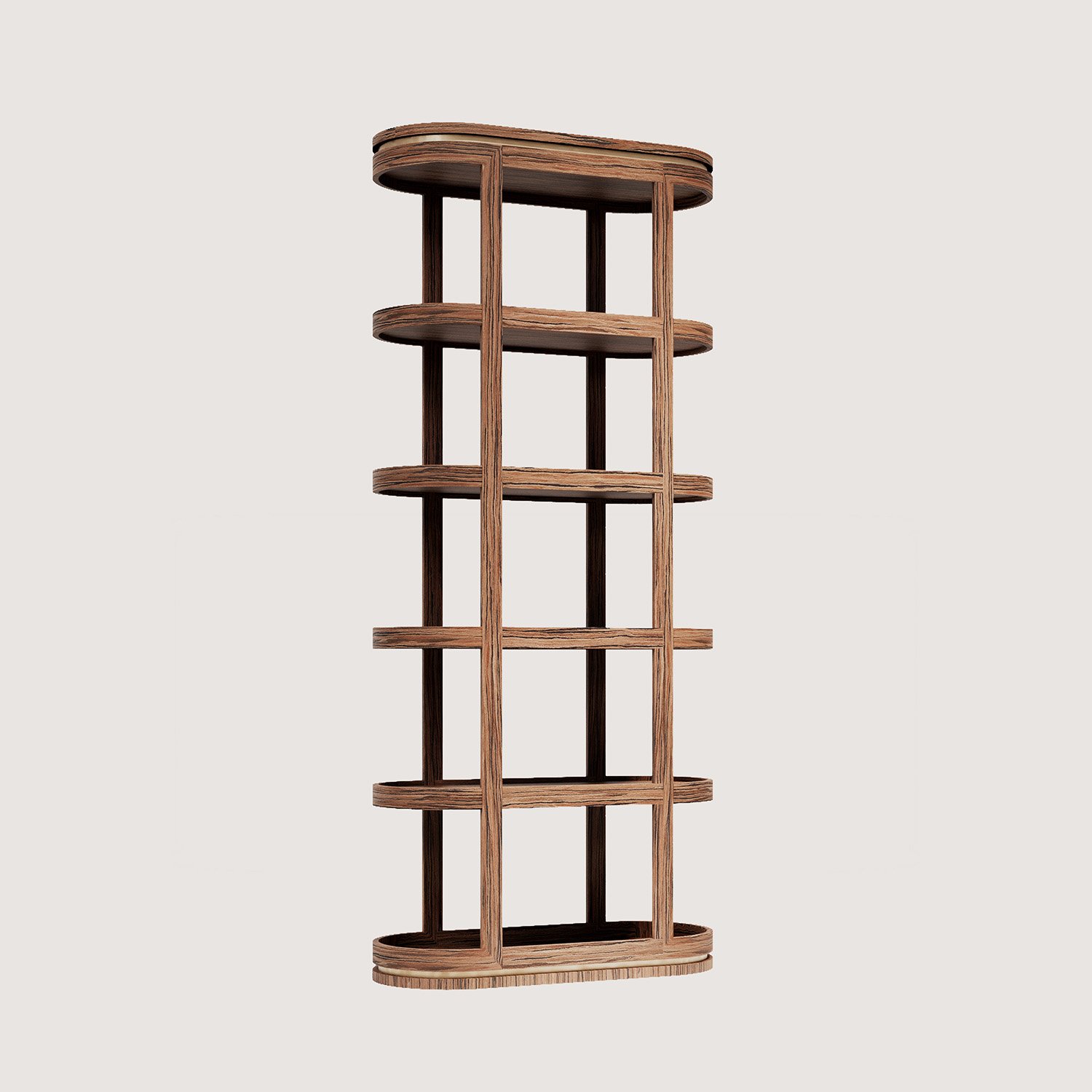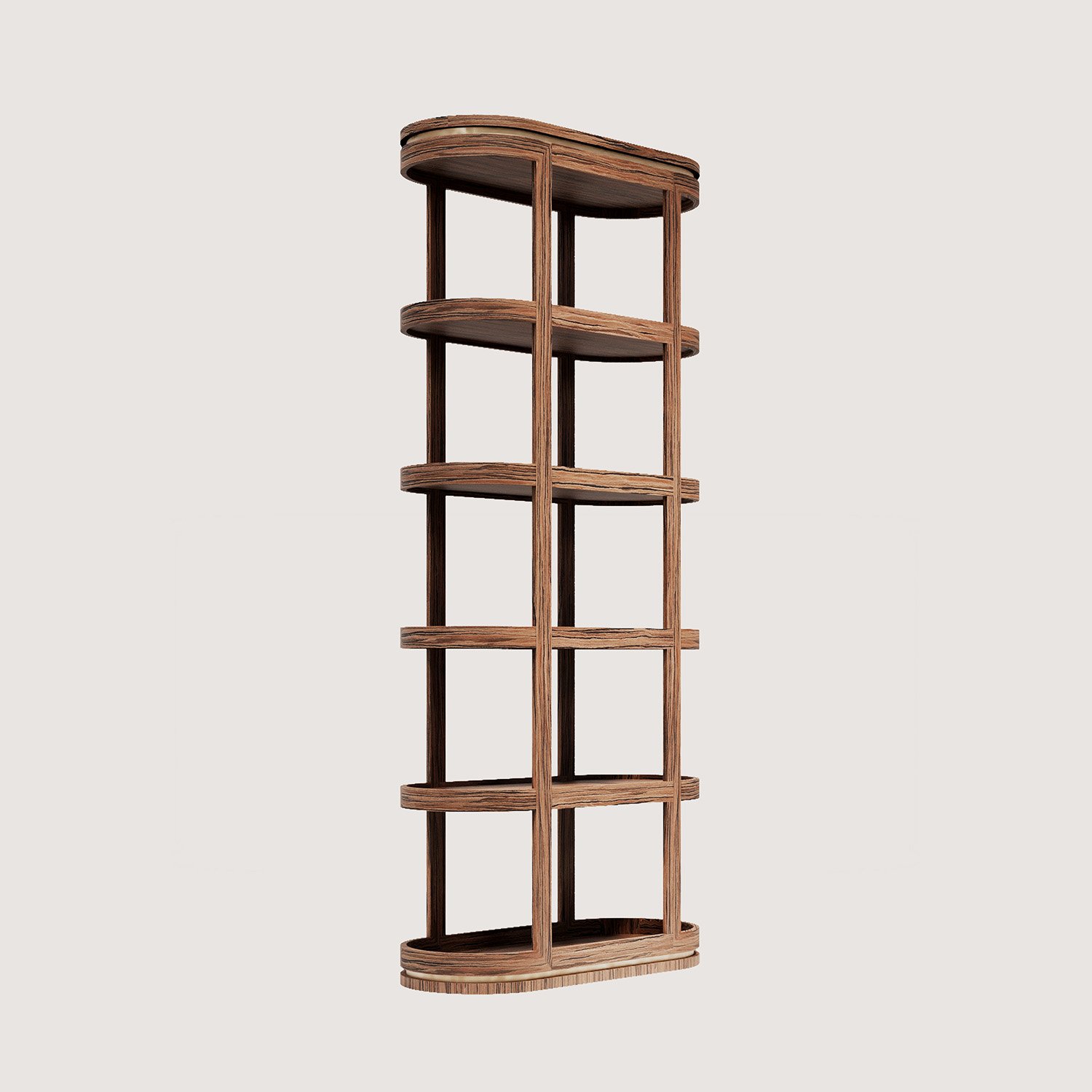 VEGAS JAPANESE CEDAR Kitaplık, bombeli yapısıyla modern bir görünüme sahiptir. İtalyan ALPI markasının özel serisinden olan “JAPANESE Cedar” ahşap kaplaması ile son derece özel bir dokusu vardır. Arka kısmı da ön kısmı ile aynı şekilde devam ettiğinden duvara yaslanmasına gerek olmadan kullanılabilir. 5 raflıdır.