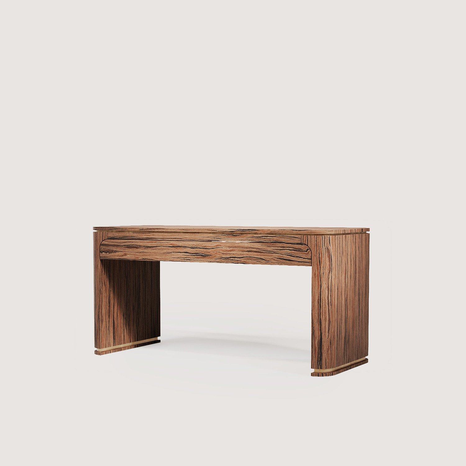 VEGAS JAPANESE CEDAR Ofis Masası, köşeleri bombeli yapısıyla modern bir görünüme sahiptir. İtalyan ALPI markasının özel serisinden olan “JAPANESE Cedar” ahşap kaplaması ile son derece özel bir dokusu vardır. 2 çekmecelidir. Çekmeceler tam açılım tandem raylıdır.