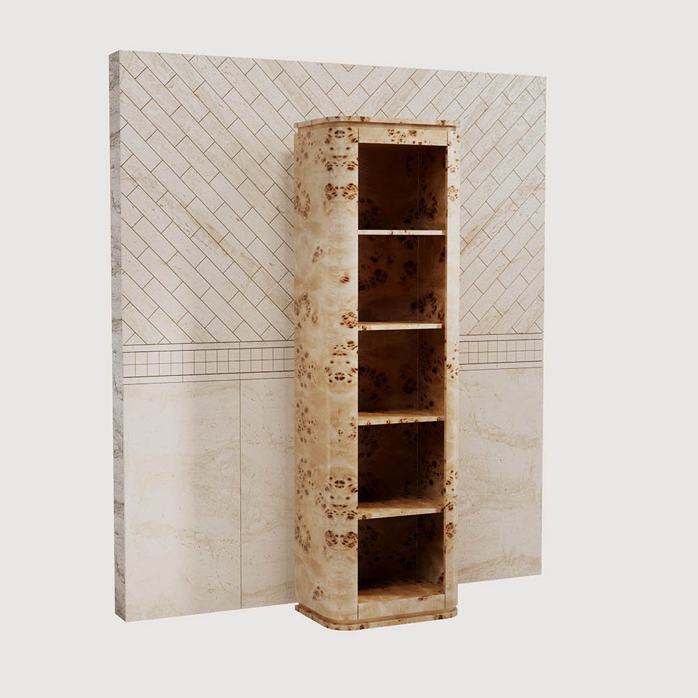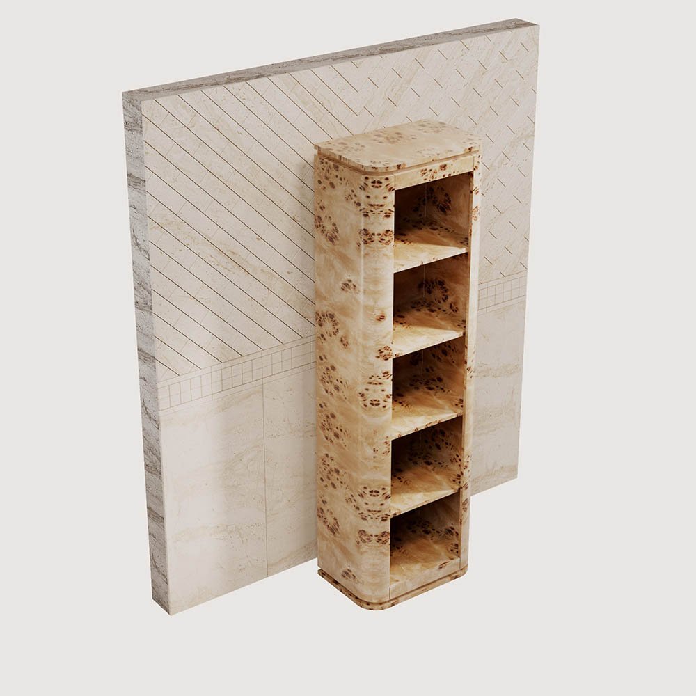 VEGAS MAZEL Banyo Rafı, köşelerinin bombeli yapısıyla modern bir görünüme sahiptir. Mazel ağacının kendine has dokusu ile özel bir görünüme sahiptir. 5 raflıdır.
