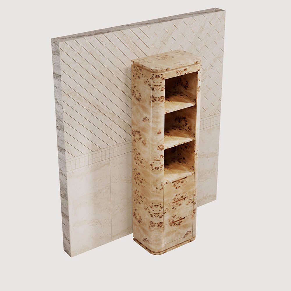 VEGAS MAZEL Çekmeceli Banyo Rafı, köşelerinin bombeli yapısıyla modern bir görünüme sahiptir. Mazel ağacının kendine has dokusu ile özel bir görünüme sahiptir. Çekmeceleri ile çok amaçlı kullanıma olanak tanır. Çekmeceler tam açılım tandem raylıdır.
