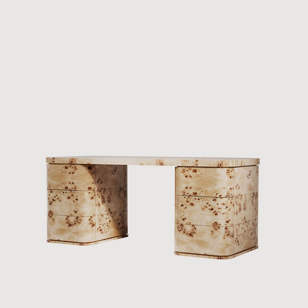 VEGAS MAZEL Etajerli Ofis Masası, köşeleri bombeli yapısıyla modern bir görünüme sahiptir. Mazel ağacının kendine has dokusu ile özel bir görünüme sahiptir. Toplam 6 çekmeceli ve çift etajerlidir. Çekmeceler tam açılım tandem raylıdır.