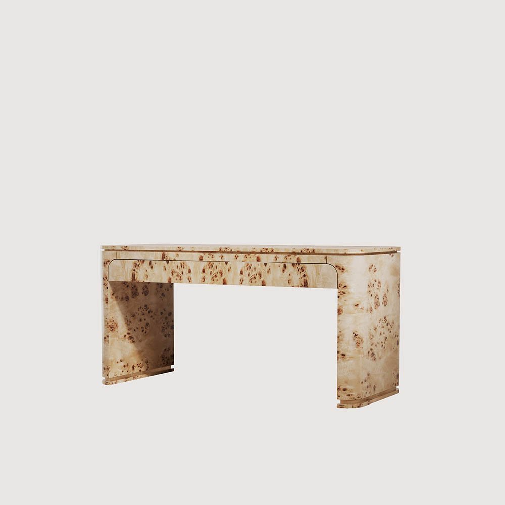 VEGAS MAZEL Ofis Masası, köşeleri bombeli yapısıyla modern bir görünüme sahiptir. Mazel ağacının kendine has dokusu ile özel bir görünüme sahiptir. 2 çekmecelidir. Çekmeceler tam açılım tandem raylıdır.