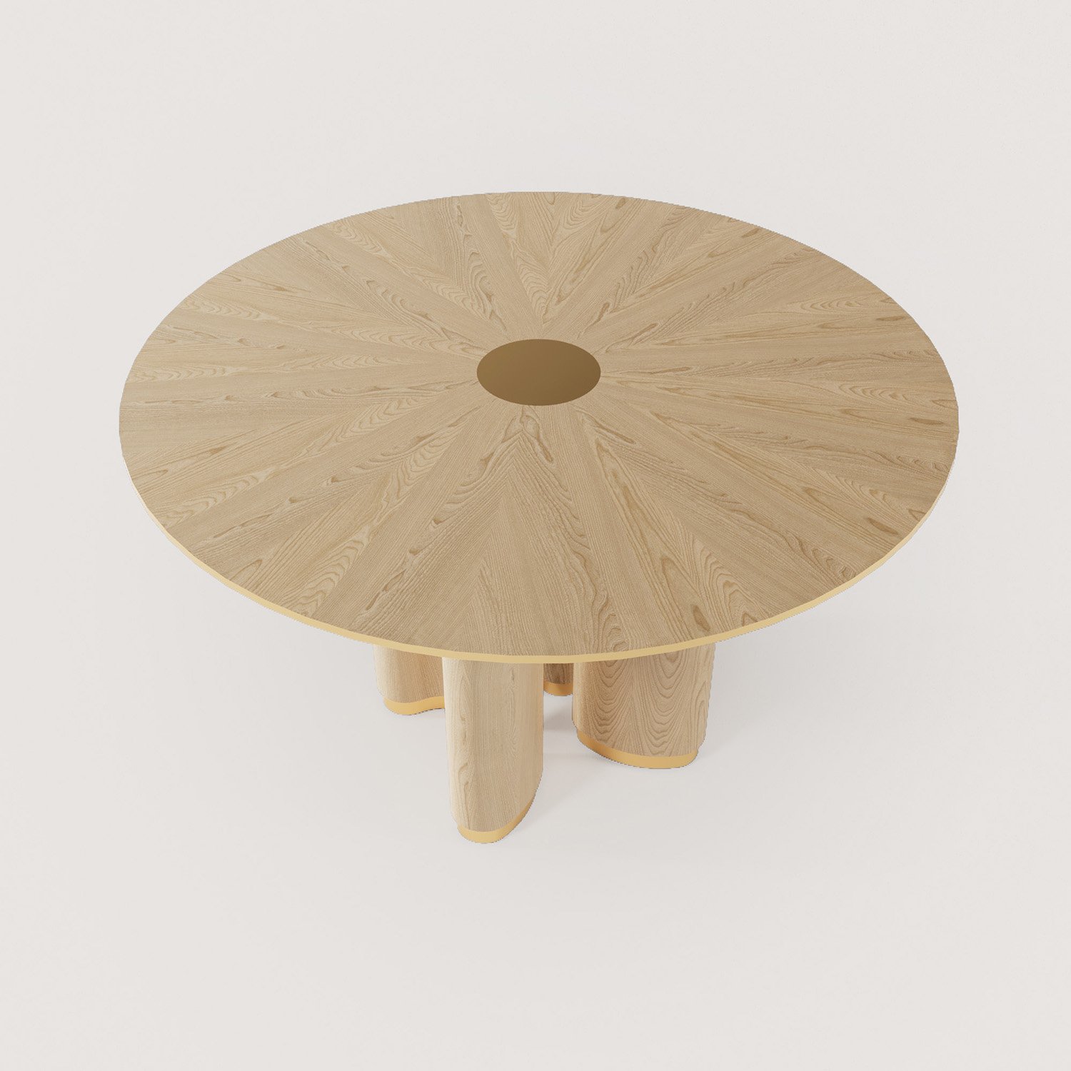 VERONA WIDE Yuvarlak Yemek Masası, şıklığı ve sadeliği bir araya getiren özel bir mobilyadır. Masa tablası ve ayağı, MDF üzeri doğal meşe kaplamalı olup, yüzeyine uygulanan fırçalama işlemi sayesinde ahşabın doğal dokusu öne çıkar. İpek mat cila, masanın hem estetik hem de dayanıklılığını artırırken, çapraz şekilde yapılan kaplama detayı tasarıma derinlik kazandırır. Gold boyama ile zenginleştirilmiş ayak kordonları ve tabla kenarları, masaya sofistike ve lüks bir görünüm katıyor. VERONA WIDE Yuvarlak Yemek Masası, zarif detaylarıyla modern ve klasik dekorasyonlarda mükemmel bir uyum sağlar. Bu masa, zarafet ve işlevselliği bir arada sunarak, yemek alanlarınızda hem estetik hem de konfor arayanlar için ideal bir seçimdir. Geniş yuvarlak yapısıyla, misafirlerinizi rahatça ağırlamanıza olanak tanır, aynı zamanda odanızın merkezine zarif bir dokunuş katar.
